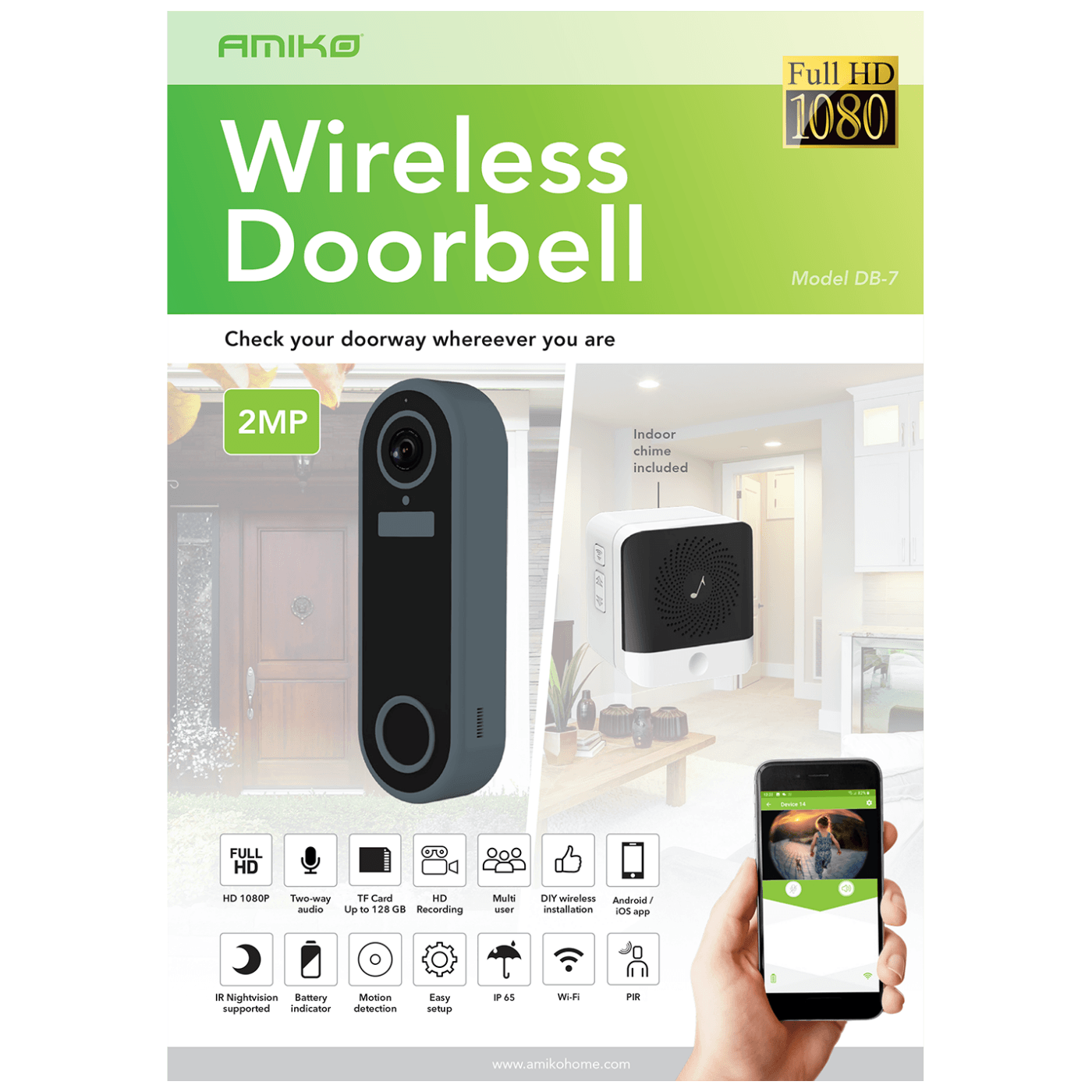 Amiko Home Bežični video interfon, DB7 – DB7 WiFi DoorBell