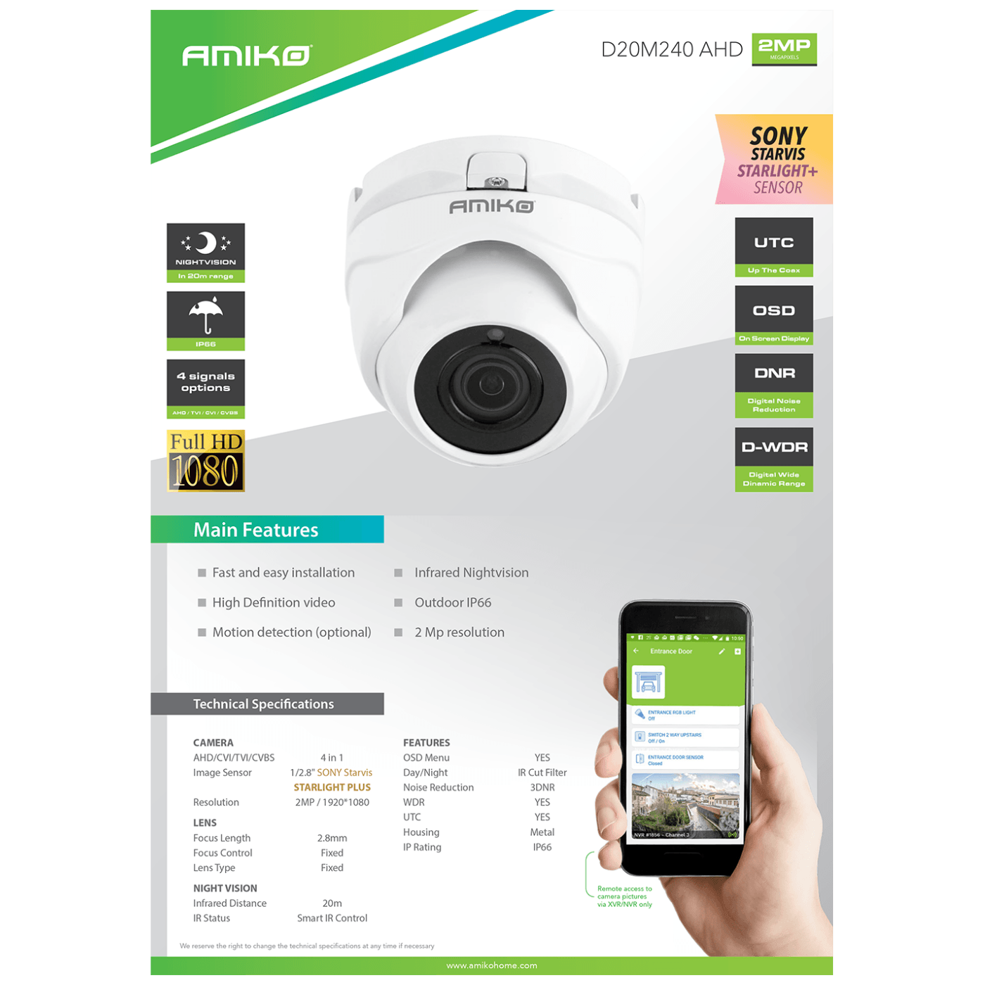 Amiko Home Kamera 2 MP, 1/2.8″ SONY Starvis CMOS, HD Lens 2,8 mm – D20M240 AHD