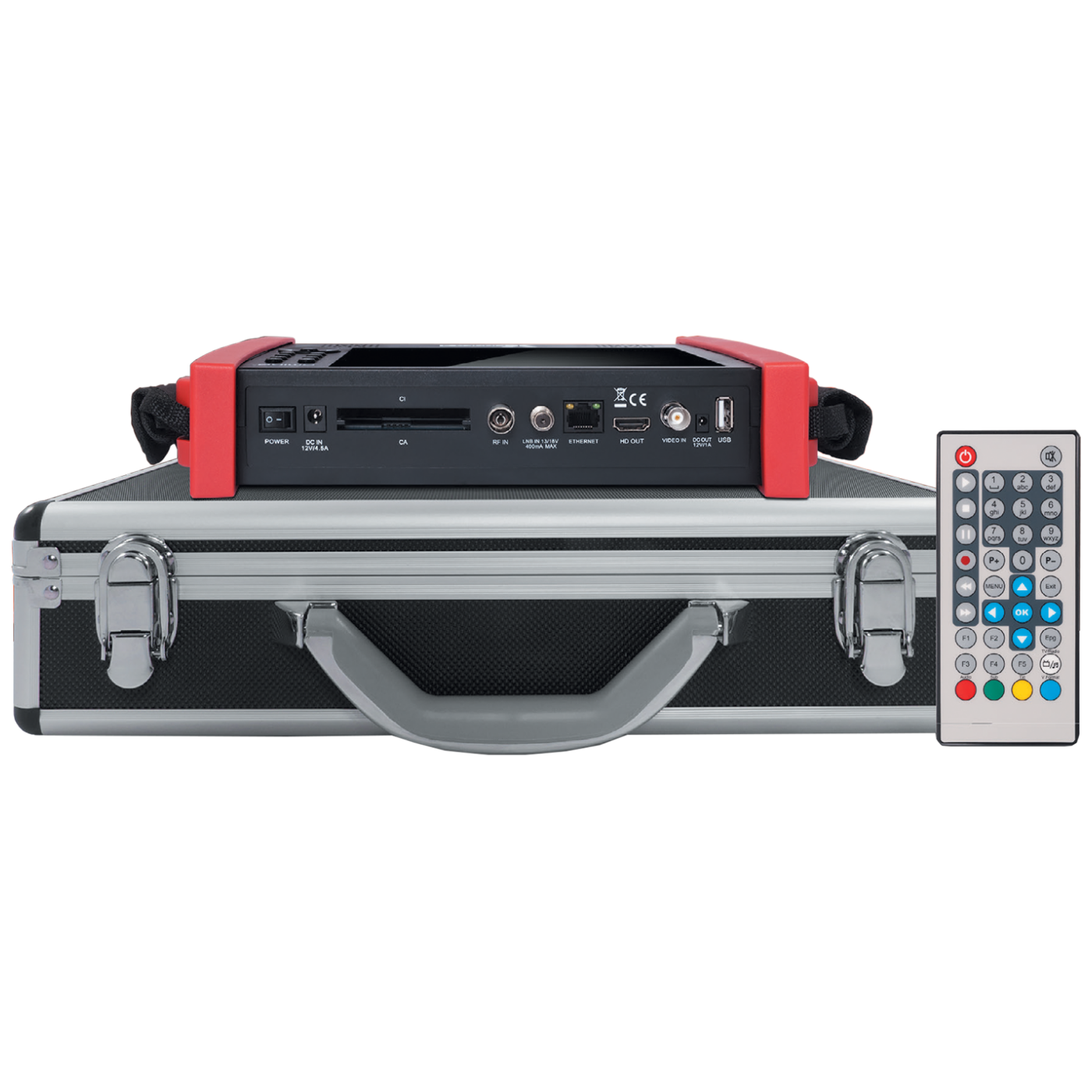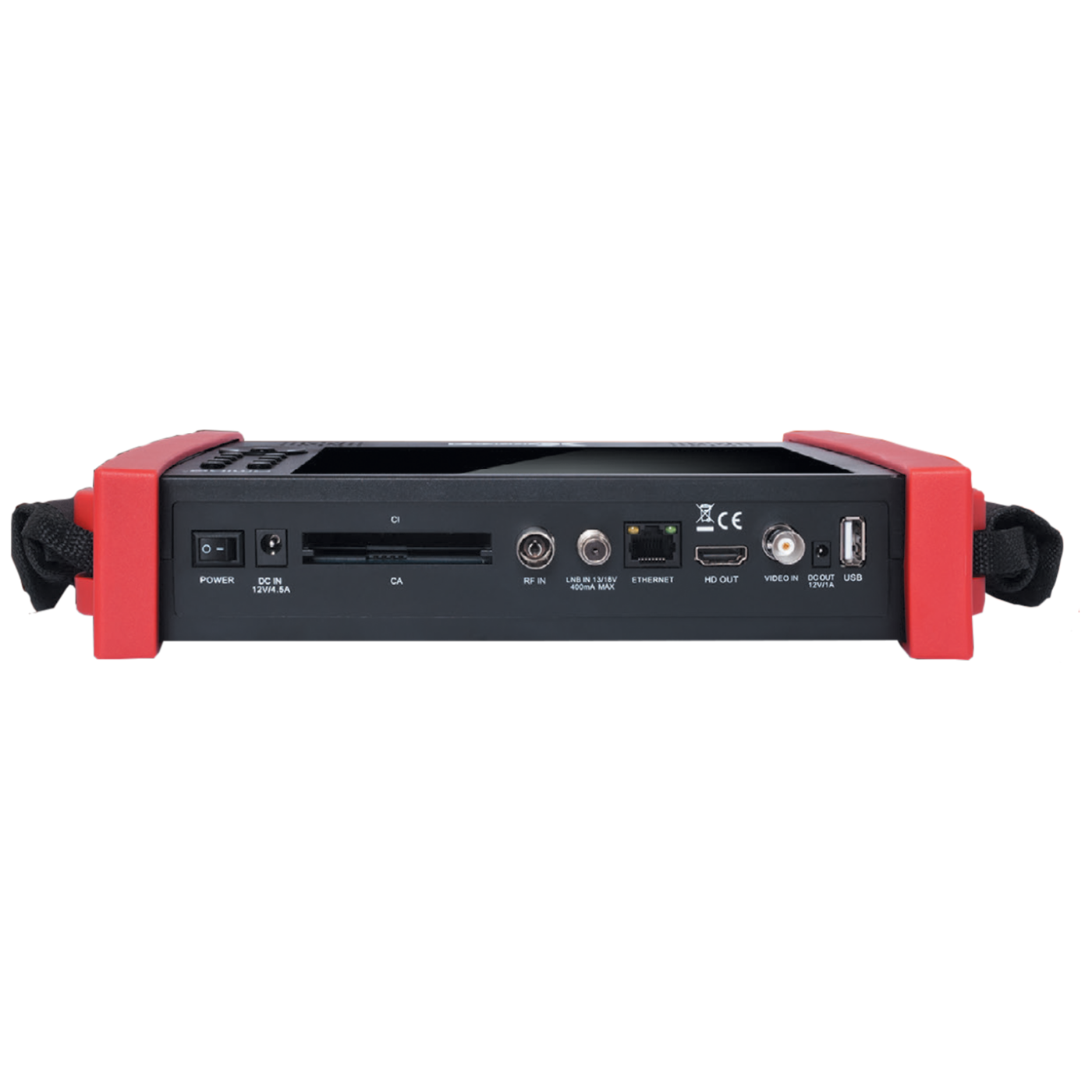 Profesionalni mjerni instrument, Combo, mjerenje signala: satelitski S2, terestrial ( zemaljska ) T2 / T, kablovski C, praktični set – top box, 7″ LCD zaslon u boji, čitač kartica sa ugrađenim Conax modulom, BNC ulaz za nadzorne kamere, analizator spektra, izračun kuta sat. tanjira, izračun i procjena pogrešaka, USB2.0 utor, reprodukcija multimedijalnih sadržaja, video dekoding H.265 HEVC, LAN 10 / 100, WiFi podrška ( Railink RT5370 ), HDMI ( 1080p ), Unicable, DIseq 1.0, 1.1, 1.2, USALS.