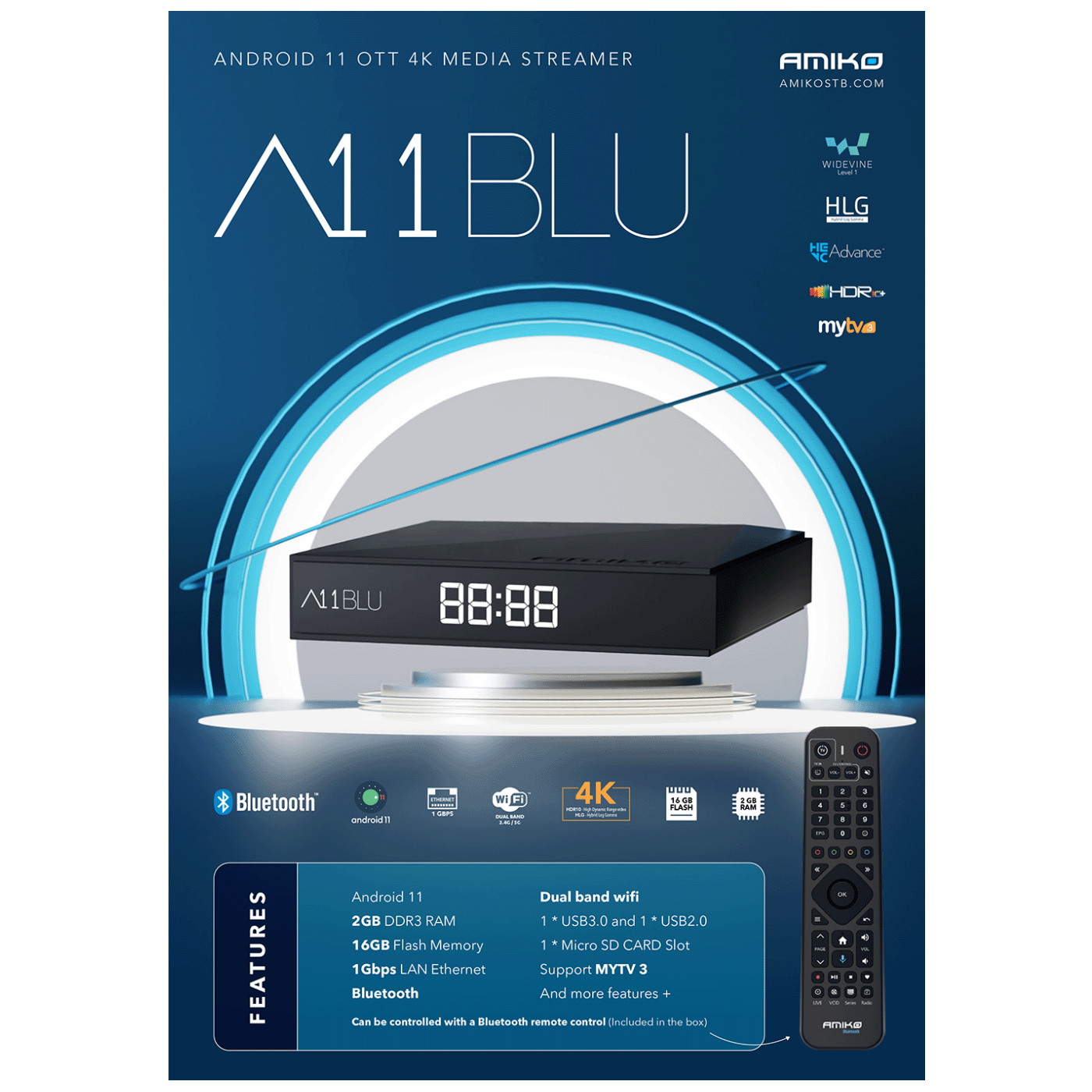 Amiko Prijemnik IPTV, Android OS, 2/16GB, 4K, WiFi, Bluetooth – A11 BLU