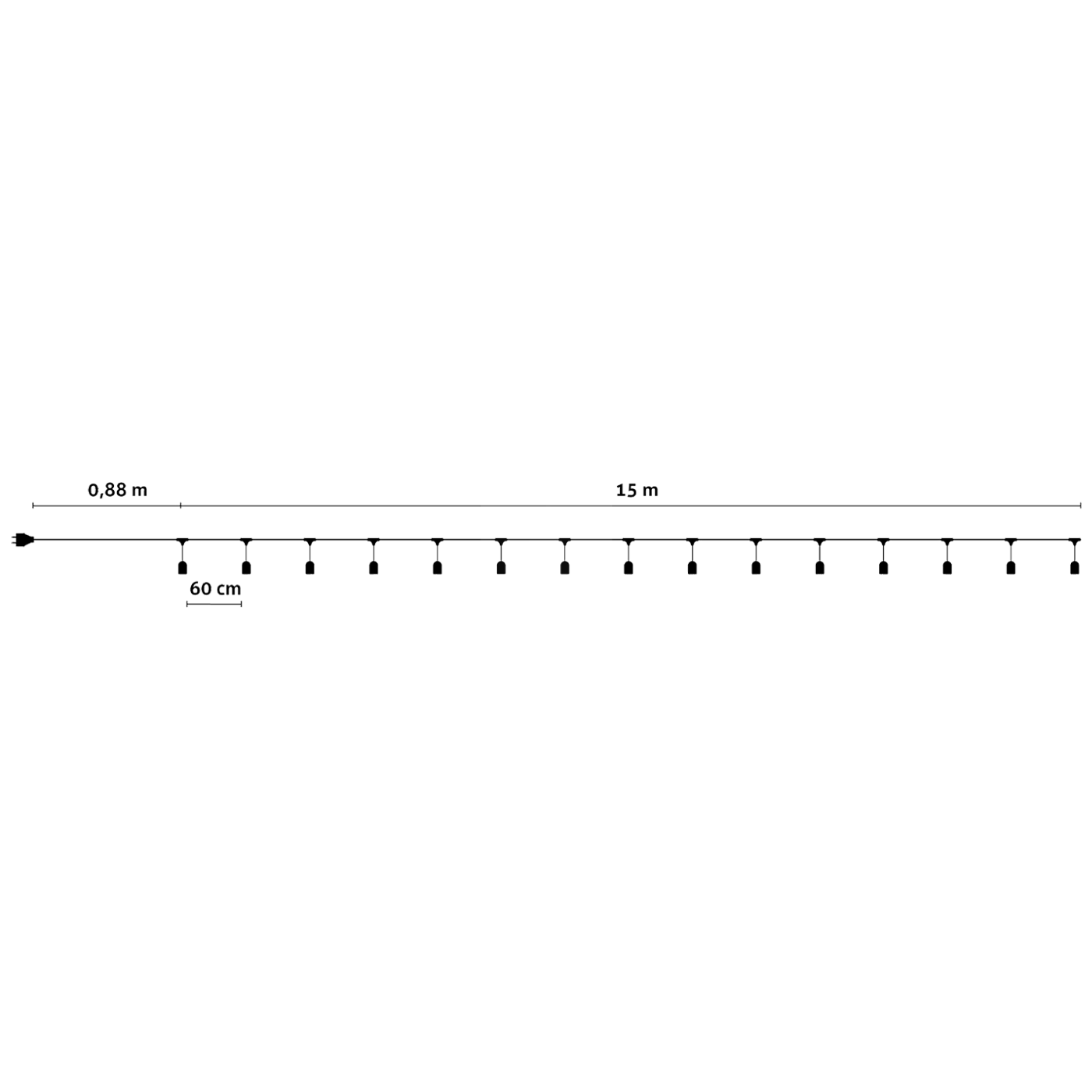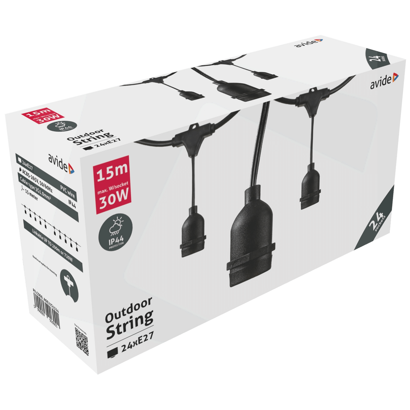 Avide Kabel sa 24 sijaličnih grla E27, dužina 15 met., Outdoor – Outdoor E27 String 15m