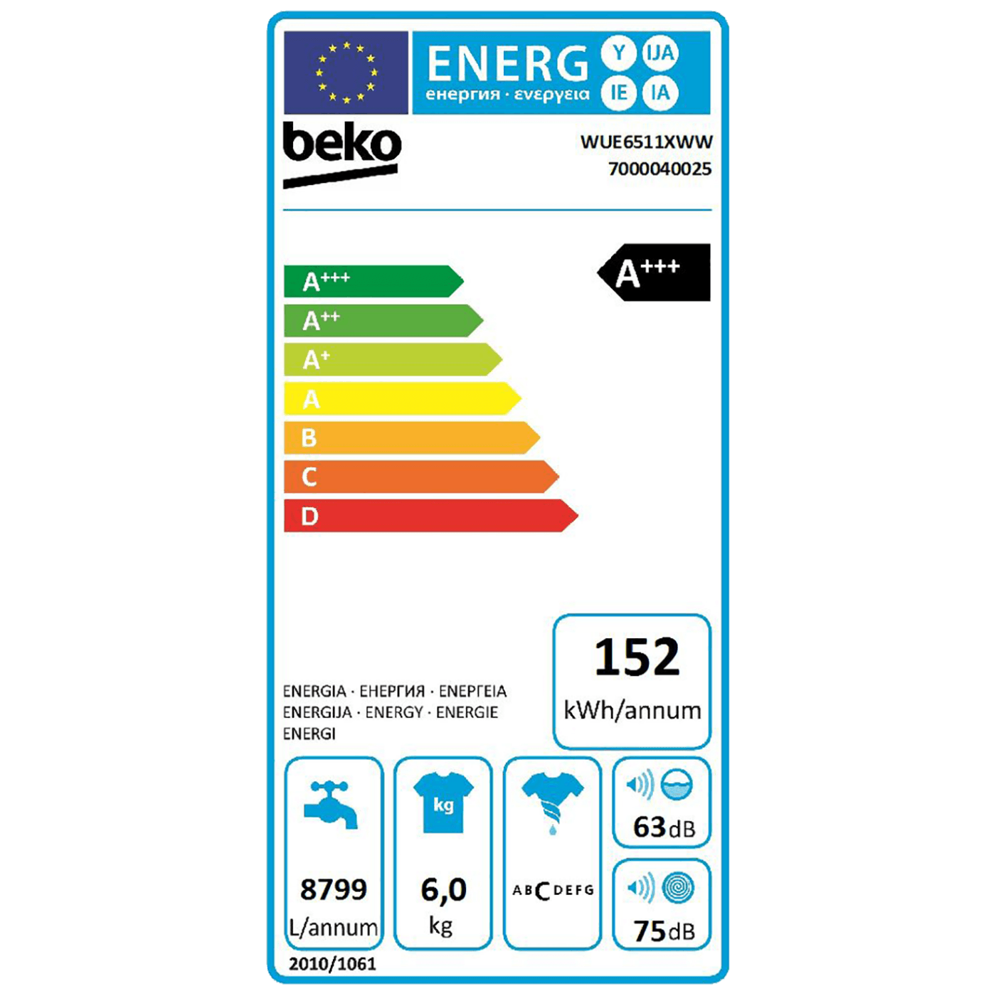 Beko Mašina za veš, 1000 obrtaja, 6kg veša, A+++ – WUE6511XWW