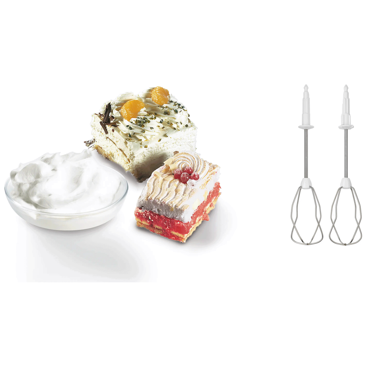 • Uključen pribor: 2 turbo metlice + 2 kukice za tijesto