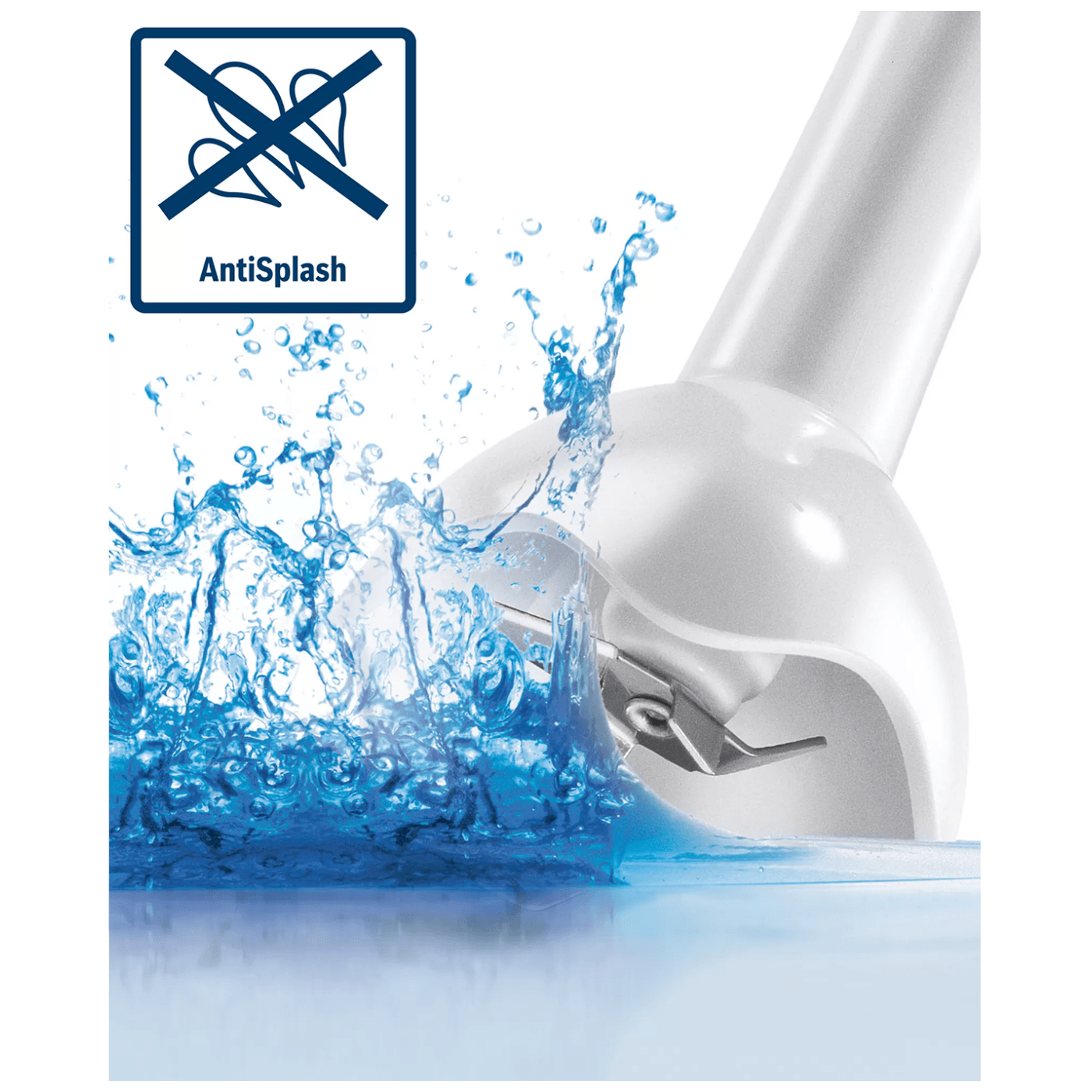 Štapni mikser, snaga motora 280 W, tih rad, nož s 4 oštrice od nehrđajućeg čelika jamči učinkovite rezultate miješanja – s funkcijom AntiSplash, ergonomska ručka za udobno držanje prilikom miješanja, jednostavna upotreba, miješanje jednim pritiskom gumba, odvojiva glava miješalice za lakše čišćenje, materijal izrade plastika