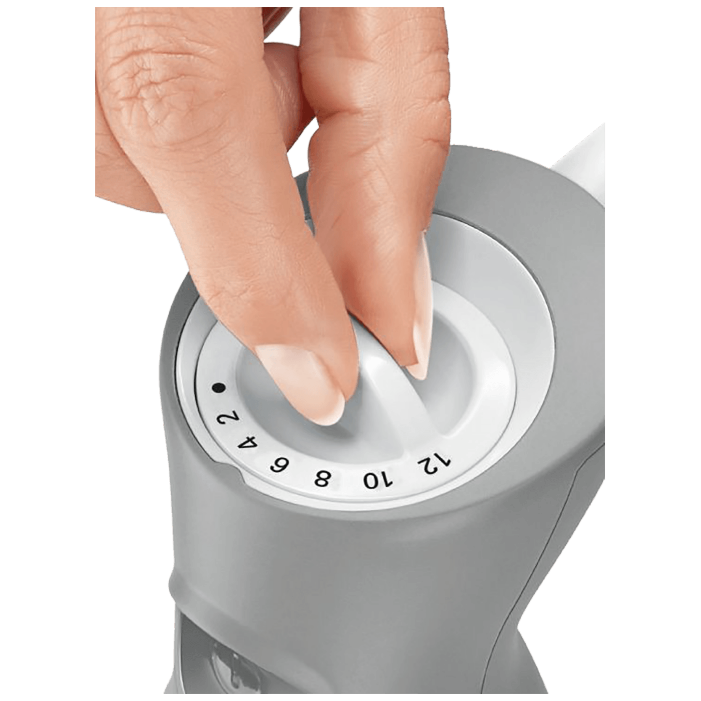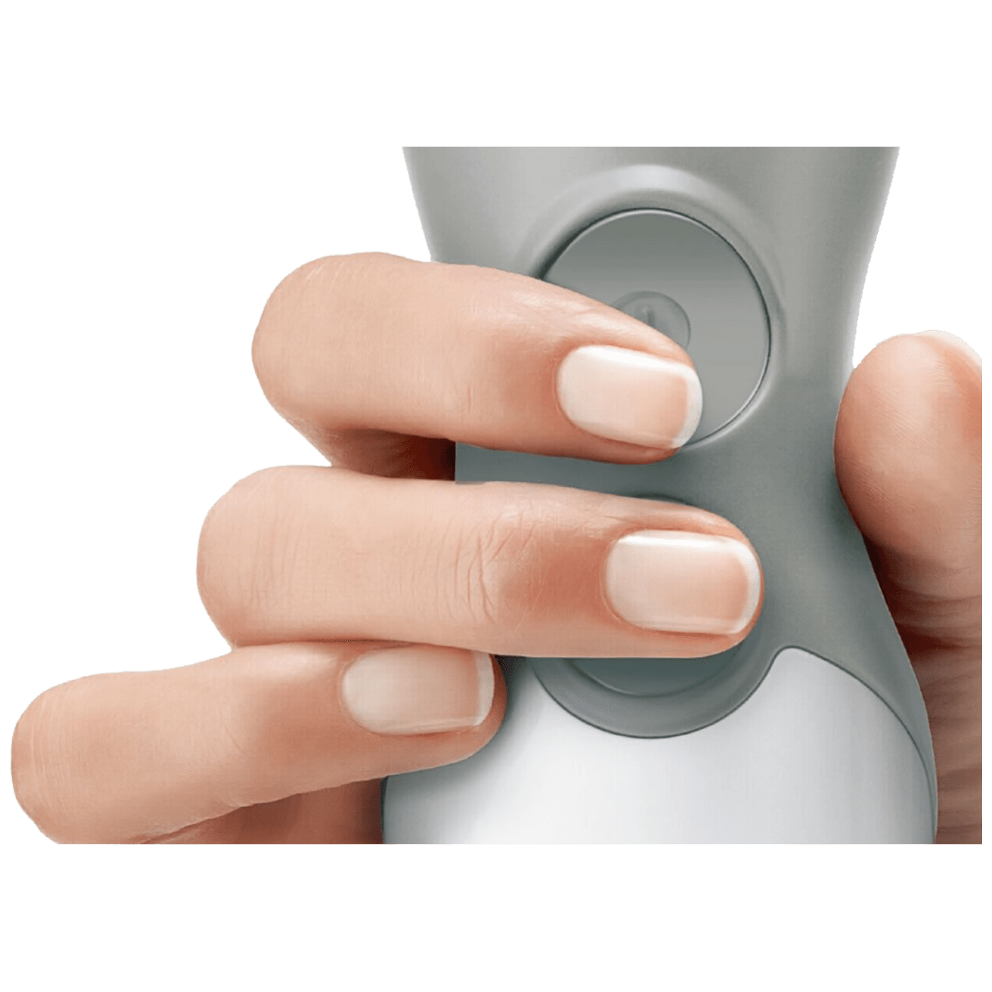 Štapni mikser, snaga motora 600 W, QuattroBlade sa četiri oštrice omogućuje jednostavno pasiranje, miješanje i sjeckanje, tipka za podešavanje brzine – 12 brzina, dodatna turbo tipka za najveću snagu,