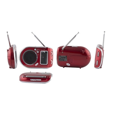 Multiband portable radio receiver with built-in alarm clock. Telescopic antenna and high-quality speakers deliver excellent signal reception and purity of sound reproduction. The digital display shows the time and frequency. Idel for travel, office or home use.