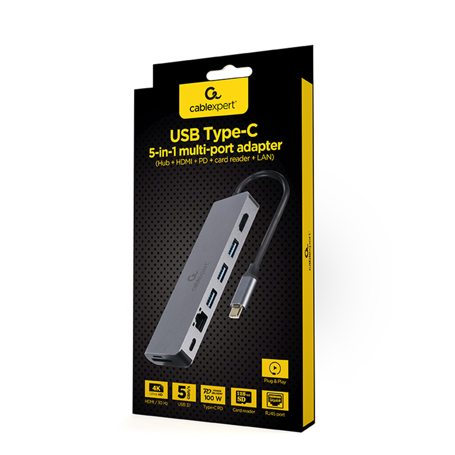 Docking station USB adapter Type-C 5-in-1 multi-port adapter Hub + HDMI + PD + card reader + LAN, A-CM-COMBO5-05