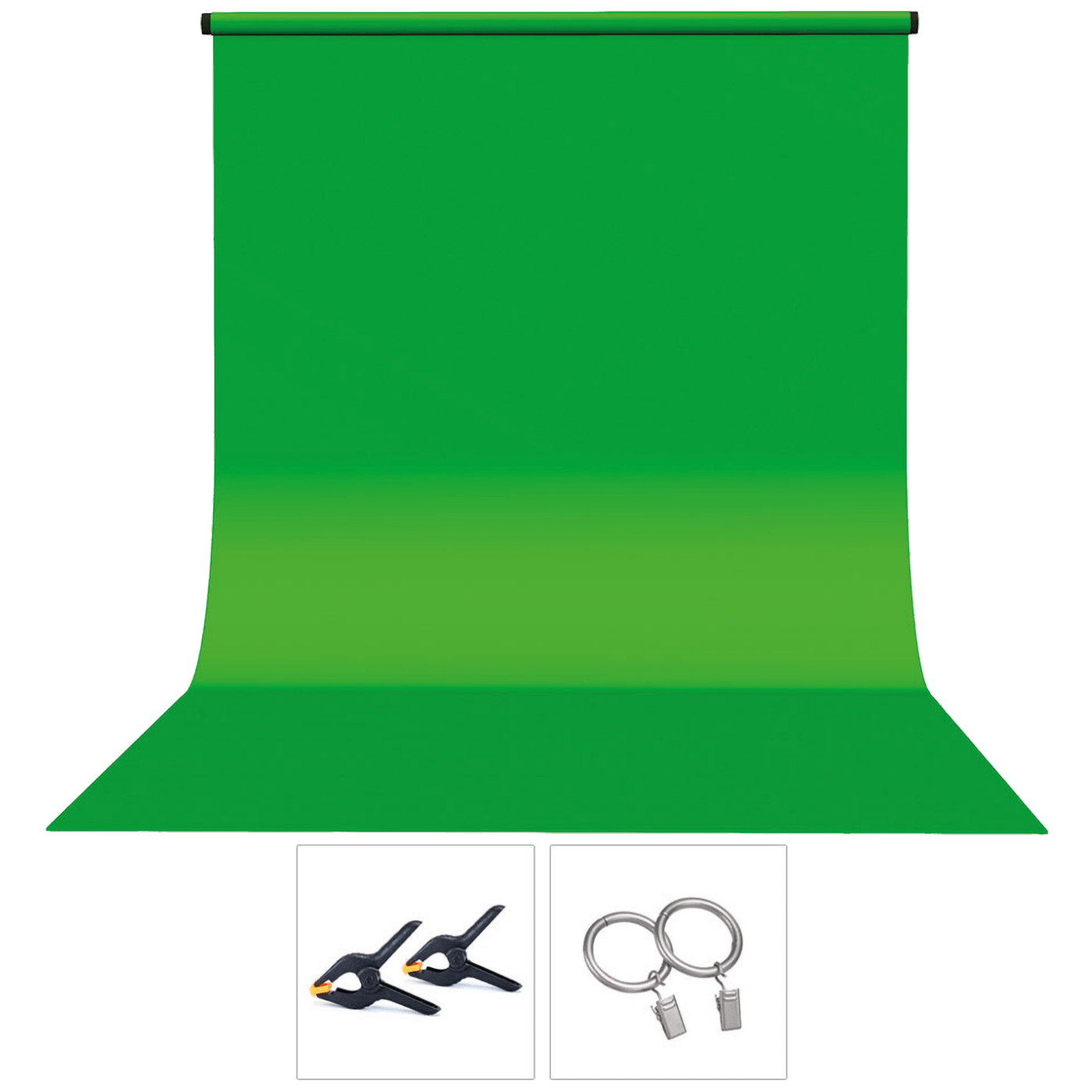 MyStudio Green Screen je dimenzija 2 × 3 metra i isporučuje se sa dva držača za montiranje i kopčama.