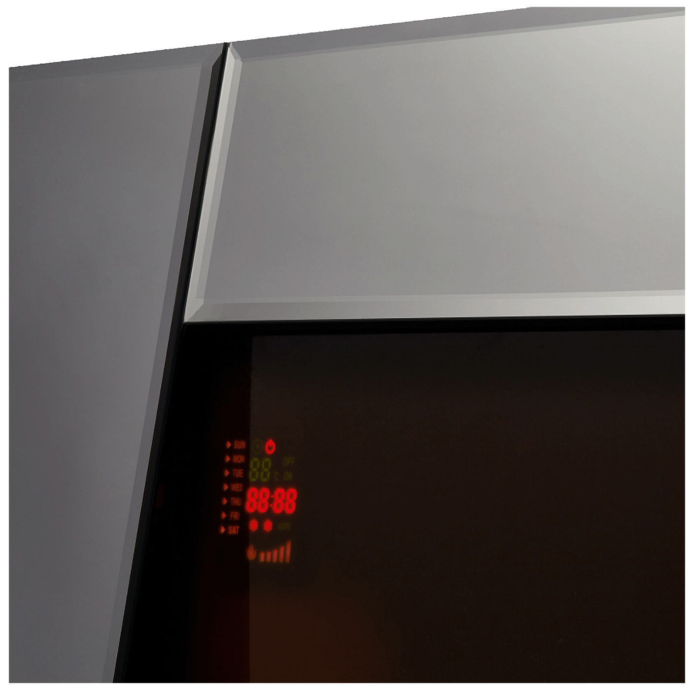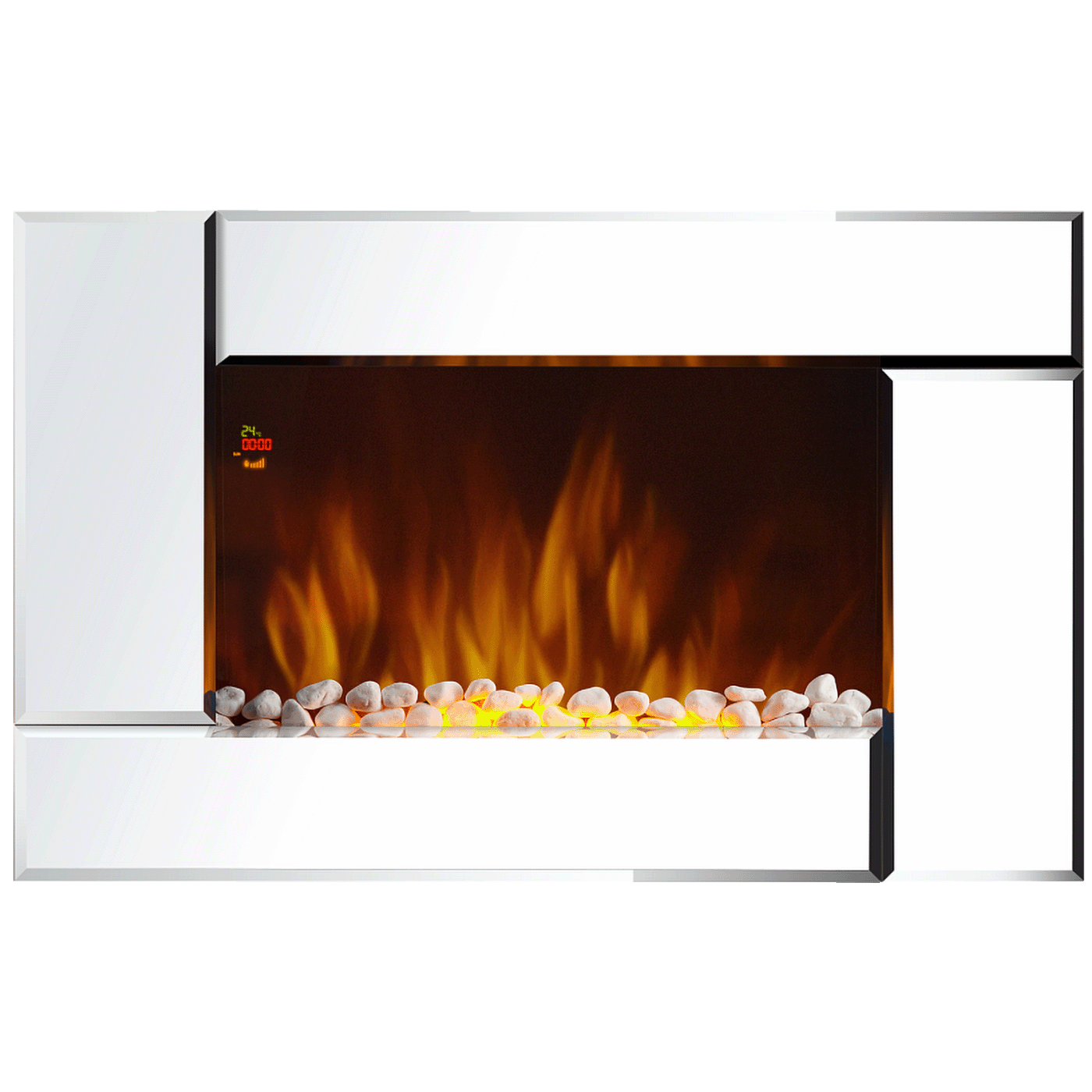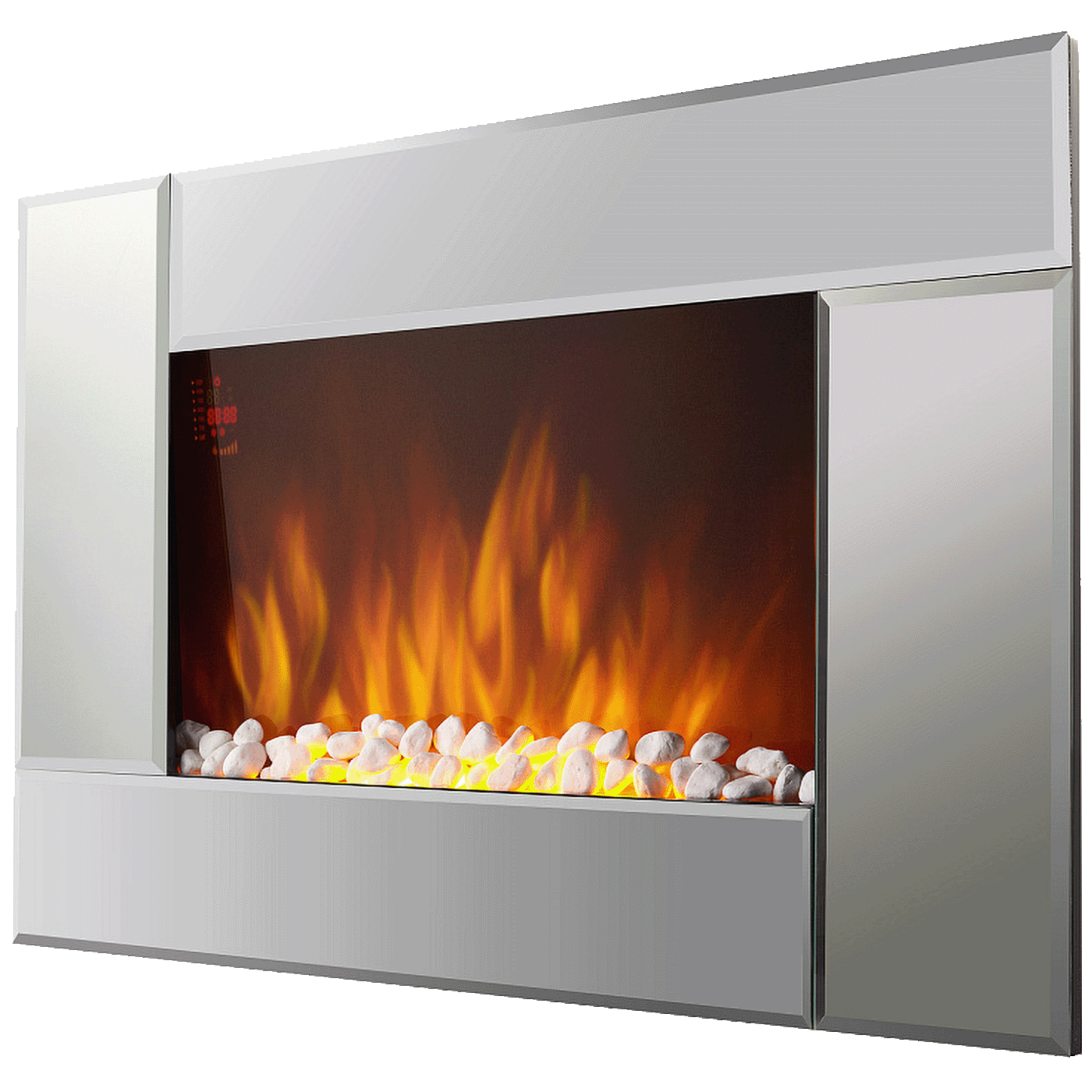Zrcalna prednja ploča trendovski je naglasak koji izgleda luksuzno u svakom interijeru, a zahvaljujući ukrasnom gorivu – “kamenju” – postiže se maksimalna razina udobnosti. Dvije razine toplinske snage stvorit će za vas optimalnu klimu.
