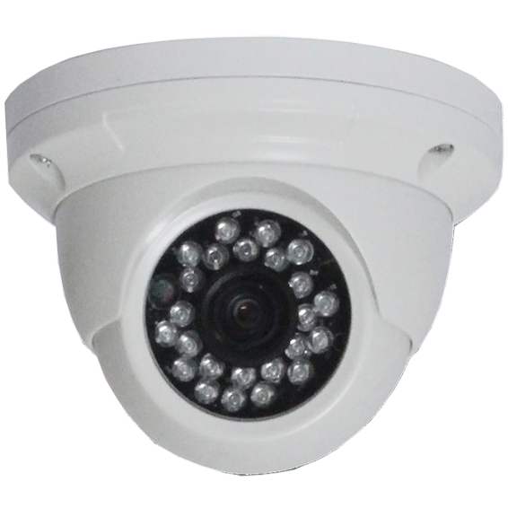 DOME kamera, 4in1, podržava TVI (TurboHD), CVI, AHD, CVBS standard, 1/4″ Aptina 1Mpixel CMOS, Optika: 3.6mm lens /F2.0, Niska svjetlosna osjetljivost (AGC), min. Osvetljenje: 0.01 Lux/F2.0, IR LED: 5×24 kom, radna udaljenost: 20m, DC12V/500mA, Metalno kućište.