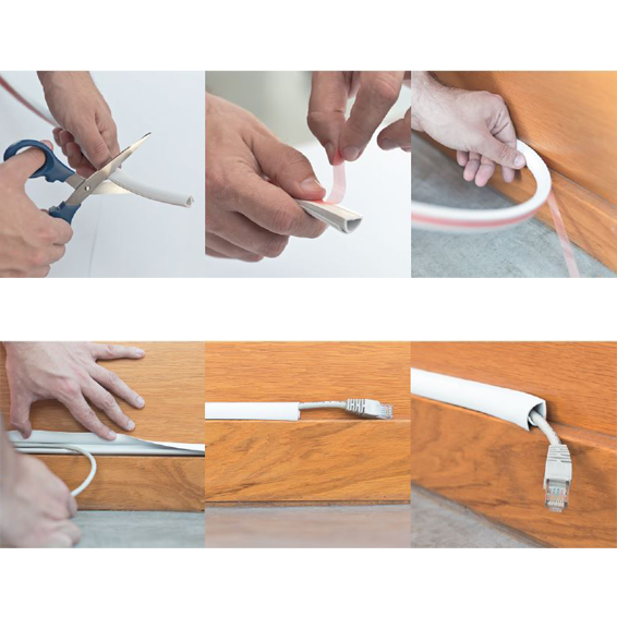 Samoljepljiva gumena fleksibilana kanalica 15 x 12, dužina 5m, jednostavna za uporabu, ljepilo koje prijanja na glatke površine, za skraćivanje i oblikovanje mogu se koristiti obične škare, postojano na temperaturi od -15 do 70 stupnjeva, primjenjuje se za ugradnju kabela, UTP, koaksijalnih itd……. boja bijela