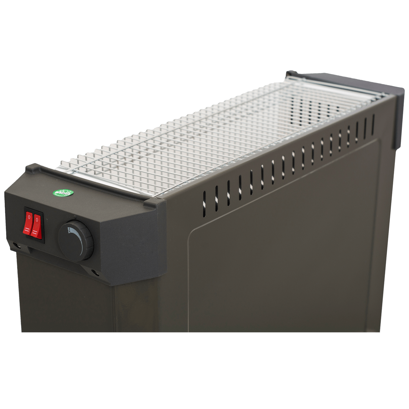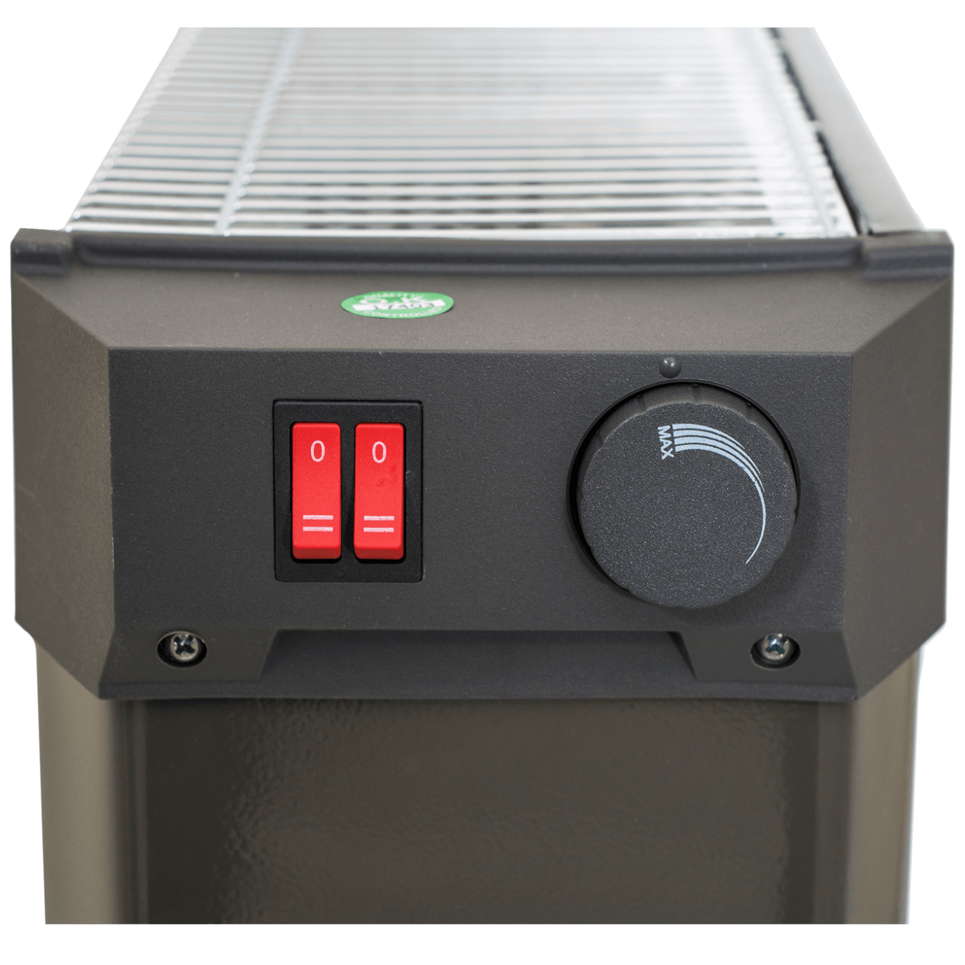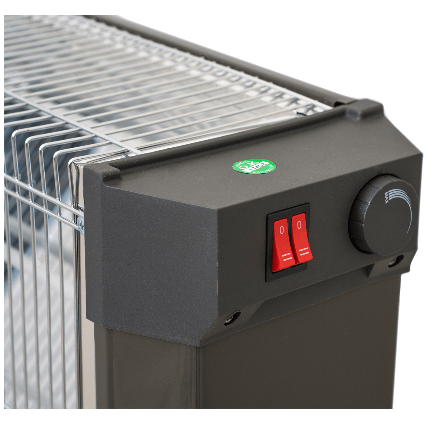 Grijalica sa halogenim ( kvarcnim ) grijačem, maksimalno 1800 W, 2 razine grijanja, 4 kvarcne cijevi, sigurnosni preklopni prekidač, podesivi termostat