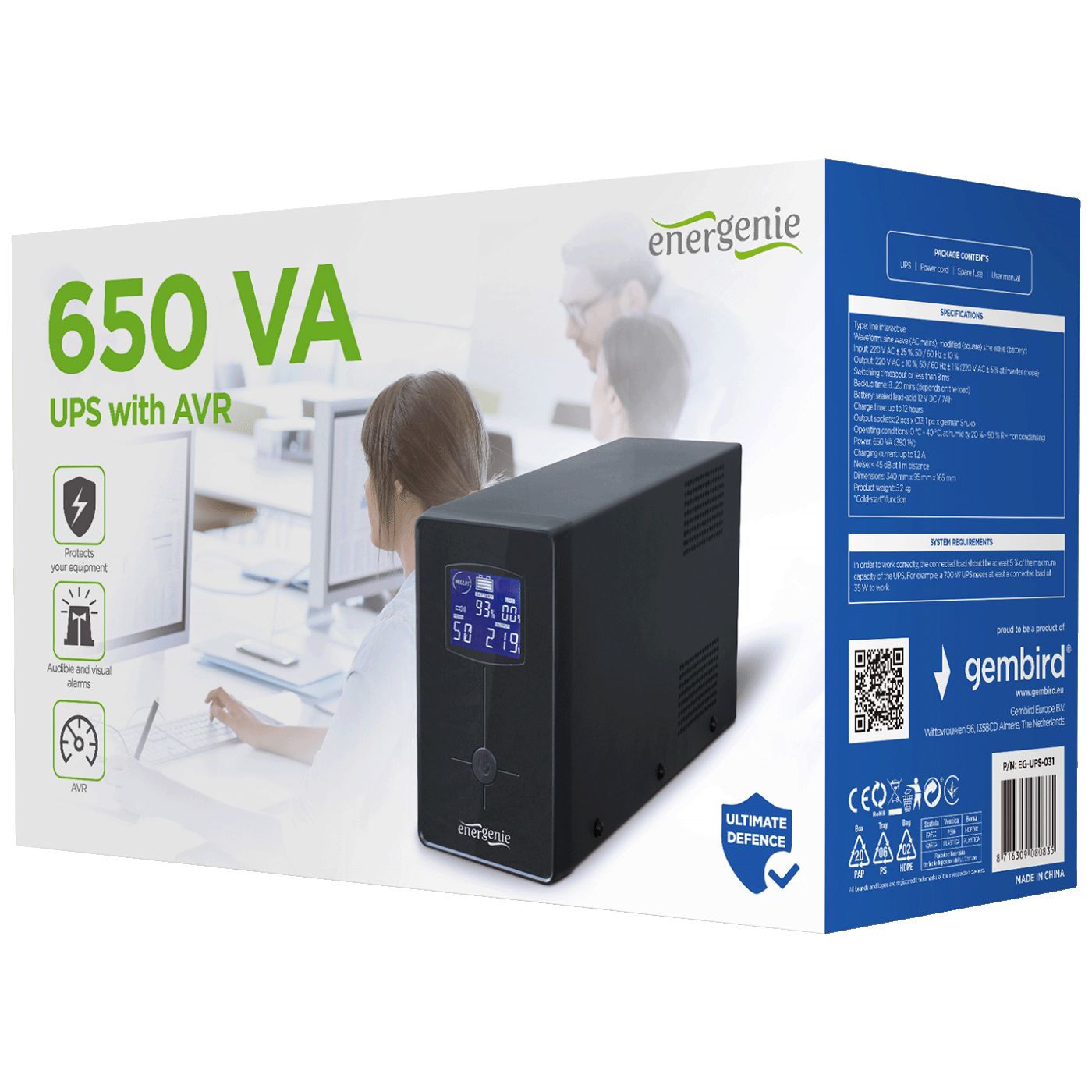 Gembird UPS/ Izvor neprekidnog napajanja, 650VA, LCD display – EG-UPS-031