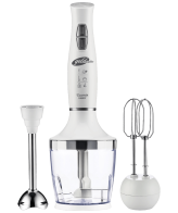 Štapni mikser sa posudom, snaga motora 1000 W, kapacitet posude 0.8 lit., funkcije: blender, sjeckalica, mikser, normal i turbo brzina, štap blendera od nehrđajućeg čelika, oštrice od nehrđajućeg čelika, tihi rad, ergonomska ručka, kompaktan dizajn za praktično skladištenje