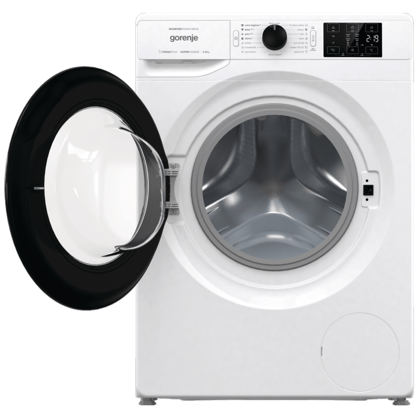 Posebni programi: Pets, Dodatna higijena, Odjeća za bebe, Daily wash, Eko 40–60 °C, Brzo pranje 20`, PowerWash 59`, Košulje, Jastuci