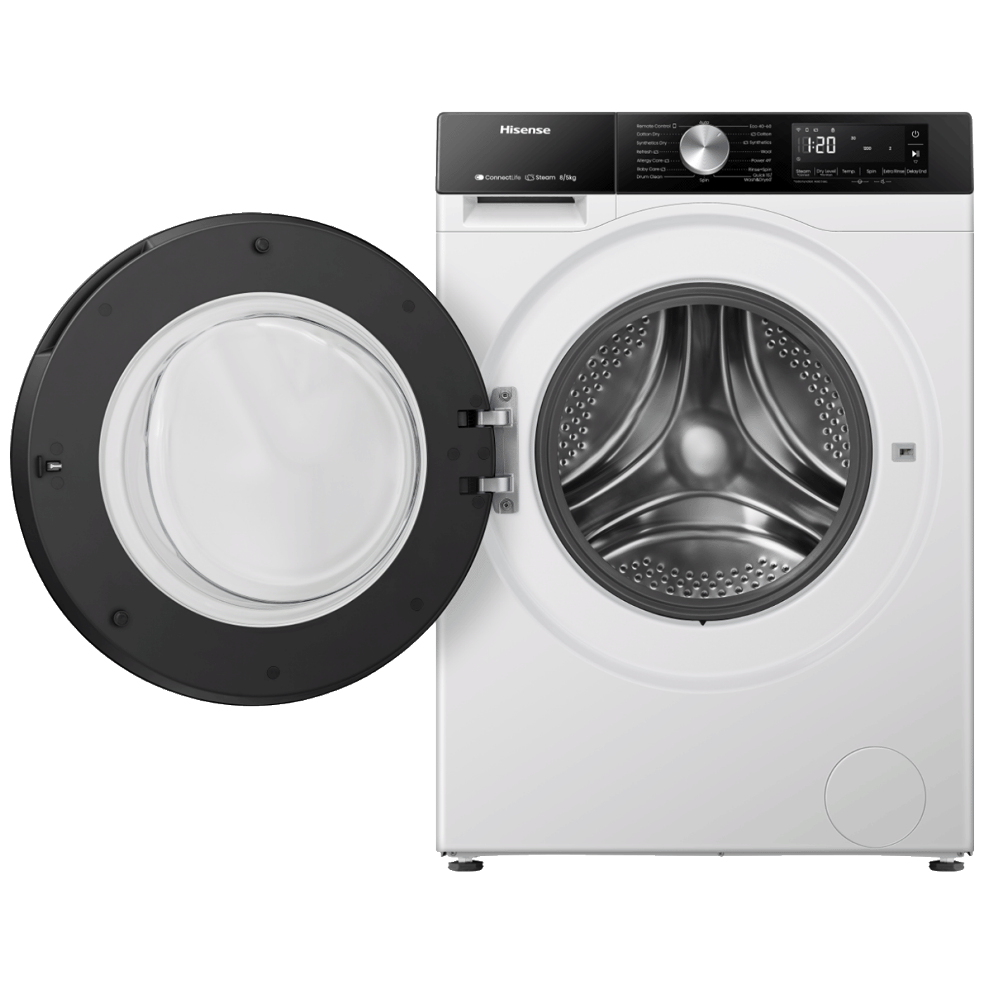 Hisense WD3S8043BW3 je samostojeća kombinovana perilica i sušilica veaša koja omogućava pranje do 8 kg i sušenje do 5 kg veša u jednom uređaju, što je praktično za manje prostore ili kada želiš vrijednost dva uređaja u jednom. Opremljena je inverter motorom za učinkovit i dugotrajan rad, velikim LED kontrolnim zaslonom za jednostavno upravljanje i Wi-Fi povezivanjem putem aplikacije ConnectLife za praćenje potrošnje energije i kontrole ciklusa na daljinu. Funkcija Steam Wash (para) pomaže ukloniti mrlje i osvježiti tkanine, a Auto Wash automatski prilagođava parametre ovisno o količini rublja. WD3S8043BW3 također nudi niz programa pranja i sušenja za različite tipove tkanina, uključujući brze cikluse, Eco program i specijalne programe za alergije ili osjetljivi veš.
