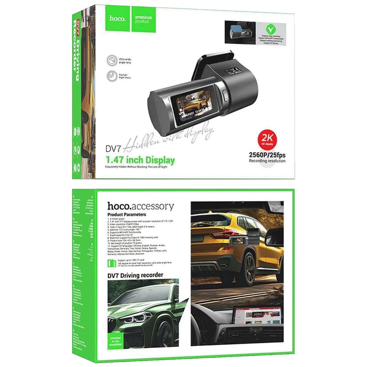 hoco. Auto kamera, 4 Mpxiel, 1.47″ TFT LCD, 2K, microSD – DV7