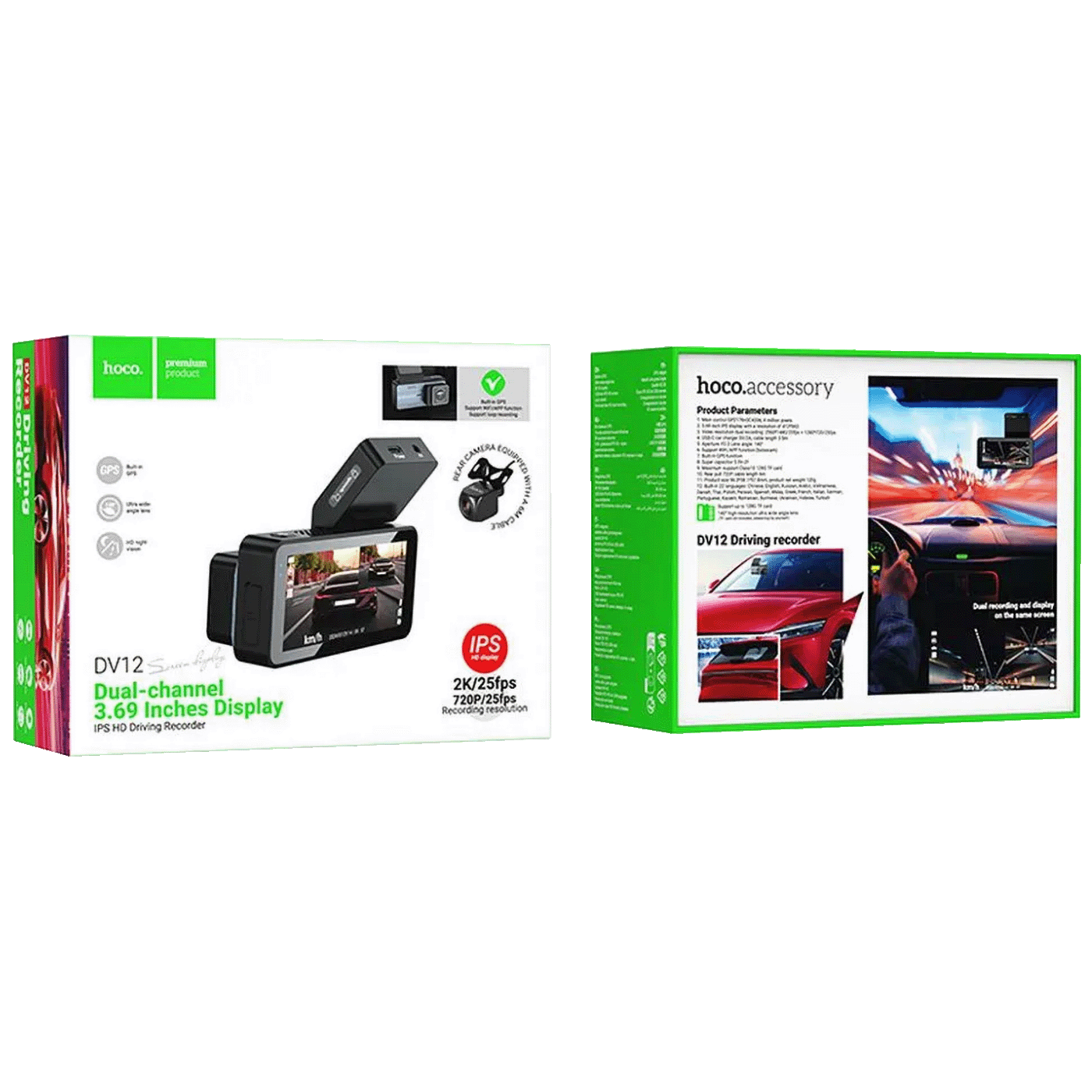 hoco. Auto kamera, 4 Mpxiel, Dual Camera, 2K, GPS, WiFi – DV12