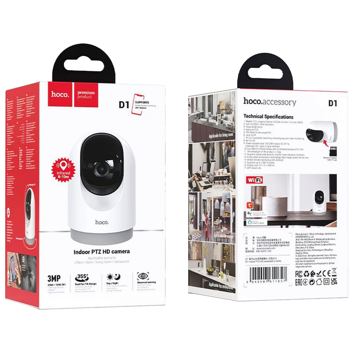 hoco. Kamera IP, 3MP, FullHD, WiFi, micro SD, Indoor – D1 Indoor PTZ