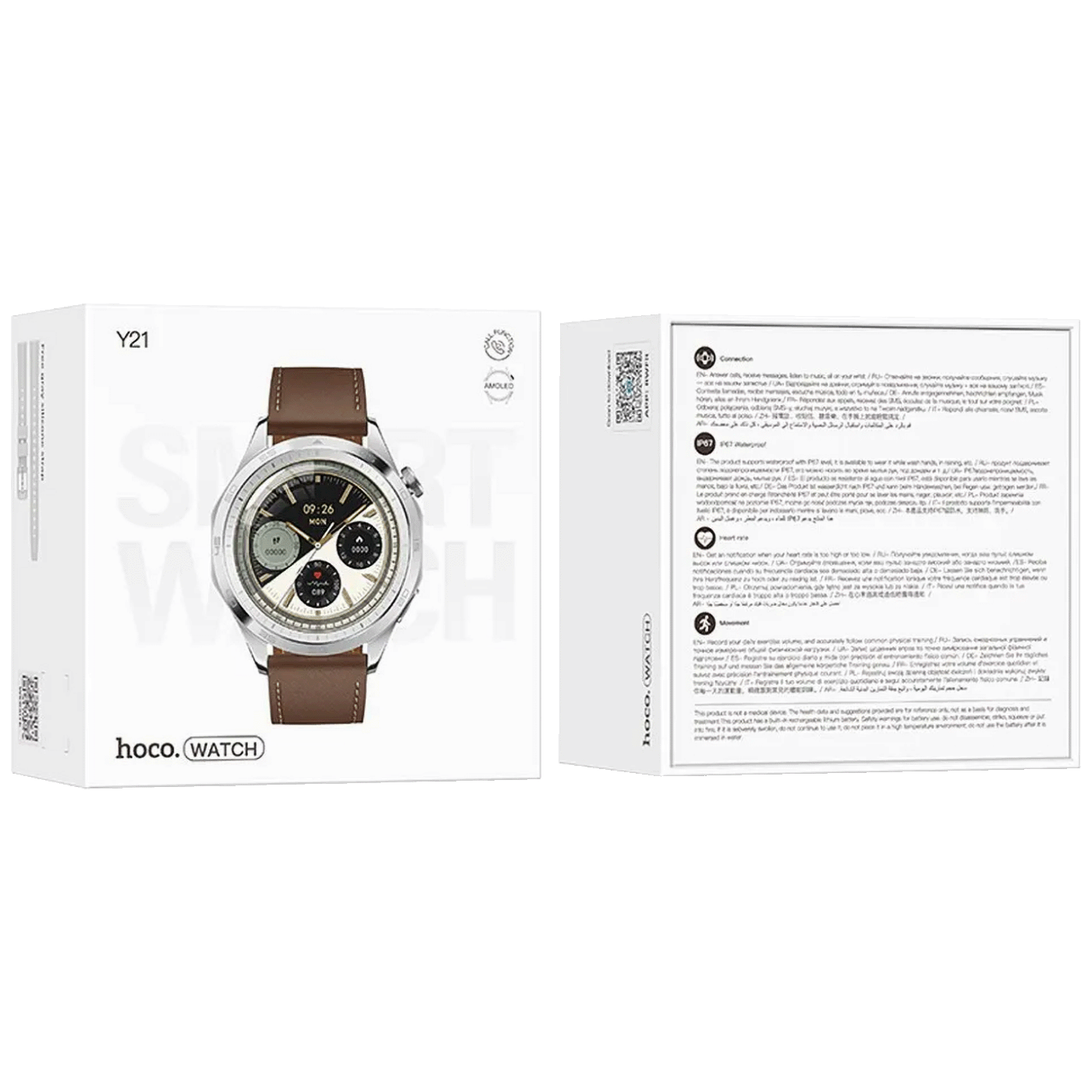 Elegantan, vodootporan pametni sat Hoco Y21 savršen je za posao, dom, putovanje ili vježbanje. Ima AMOLED ekran u boji, višesportske modove, mjeri broj otkucaja srca i zasićenost i prati spavanje. Omogućuje vam upućivanje poziva, upravljanje vezama, pregledavanje kontakata, čitanje i odgovaranje na poruke i obavijesti.