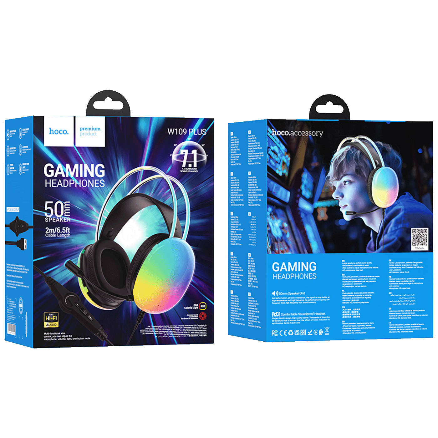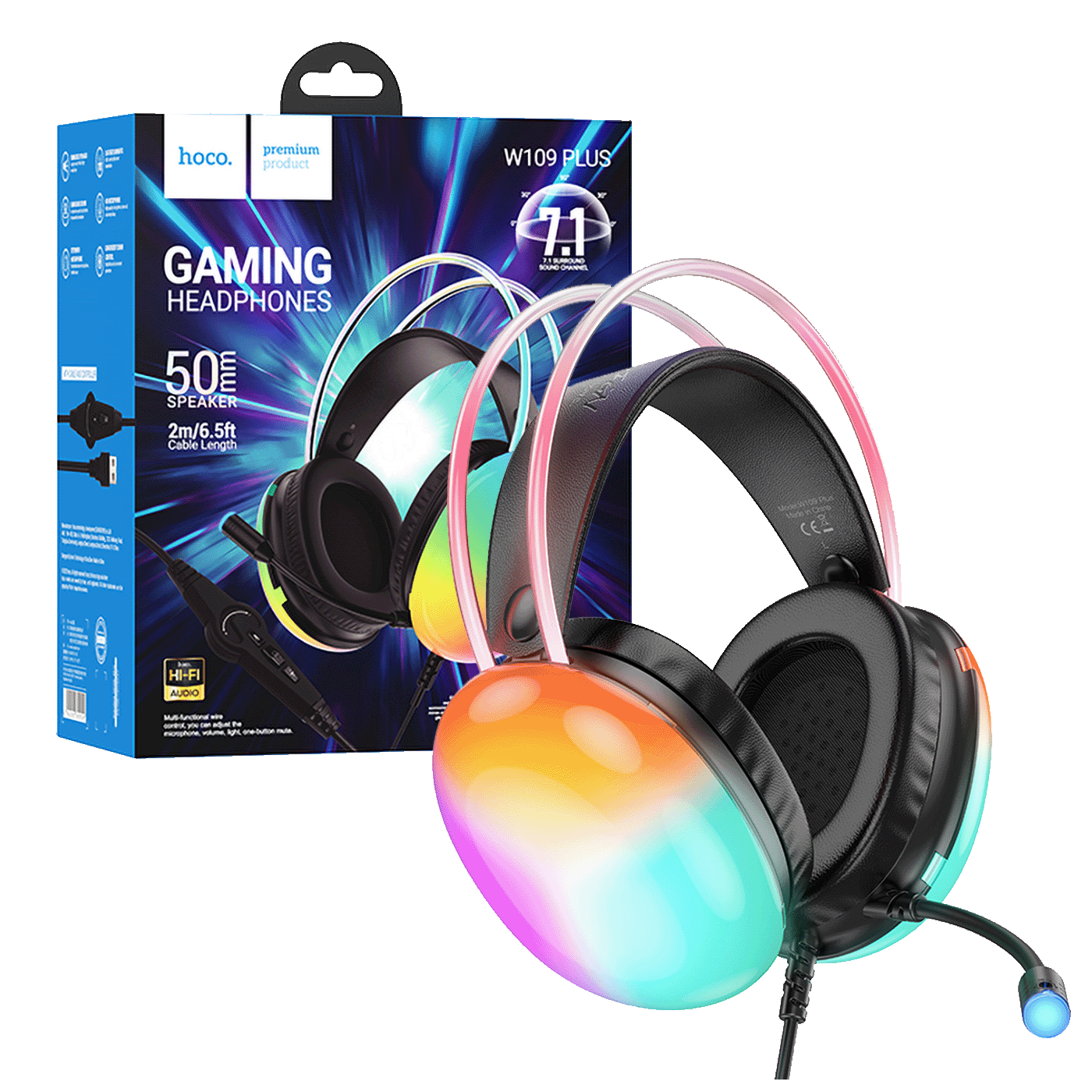 HOCO GAMING W109 Plus slušalice. Savršen dodatak za virtuelne igre. Imaju zvučne efekte, 7.1 zvuk, mikrofon i LED rasvjetu.