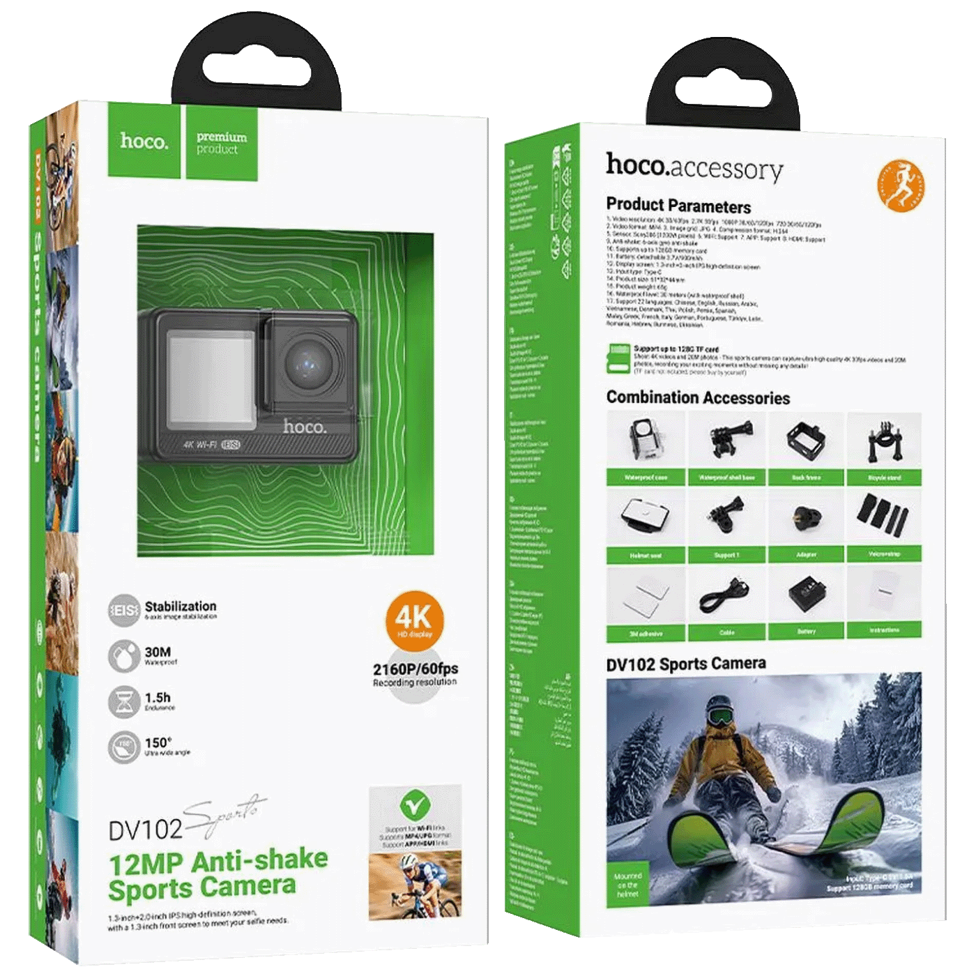 hoco. Sportska kamera, 1.3″/ 2″ IPS LCD, 4K UHD, WiFi, microSD – DV102
