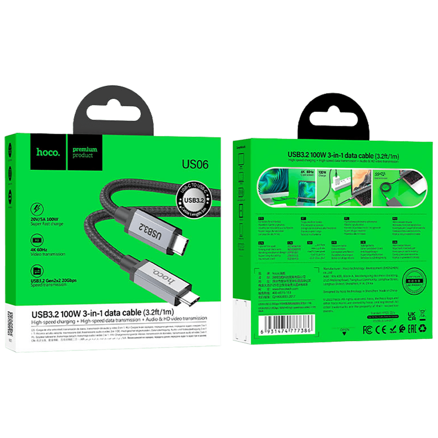 hoco. USB kabl za smartphone, 100W, US06, USB3.2 type C, 1 met. – US06 1M