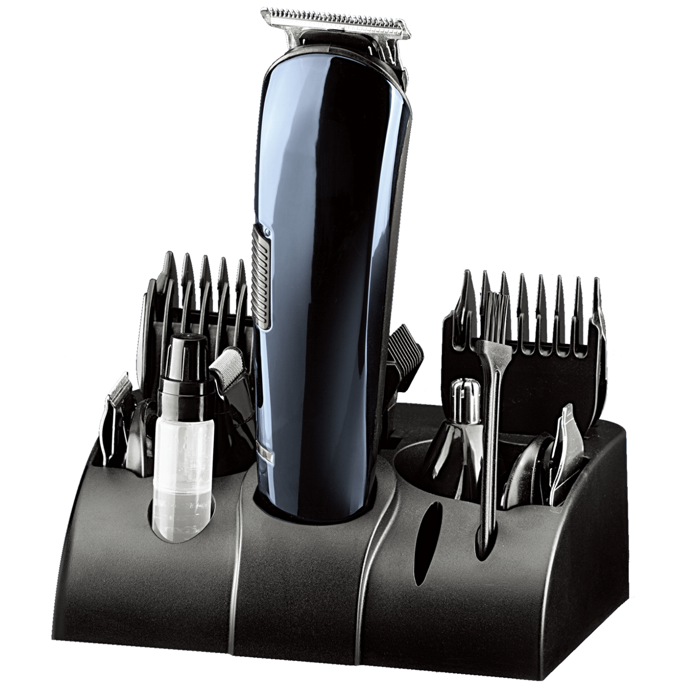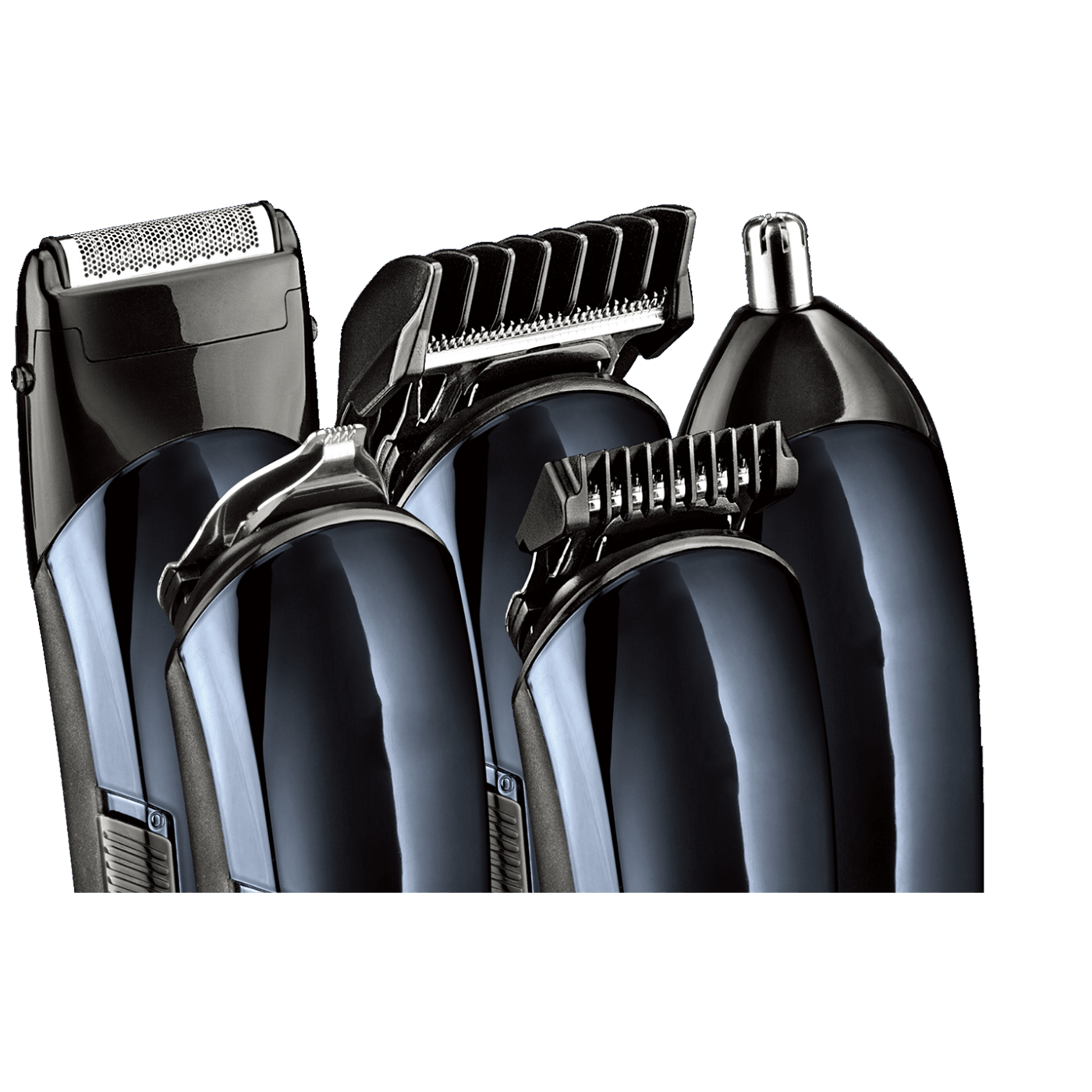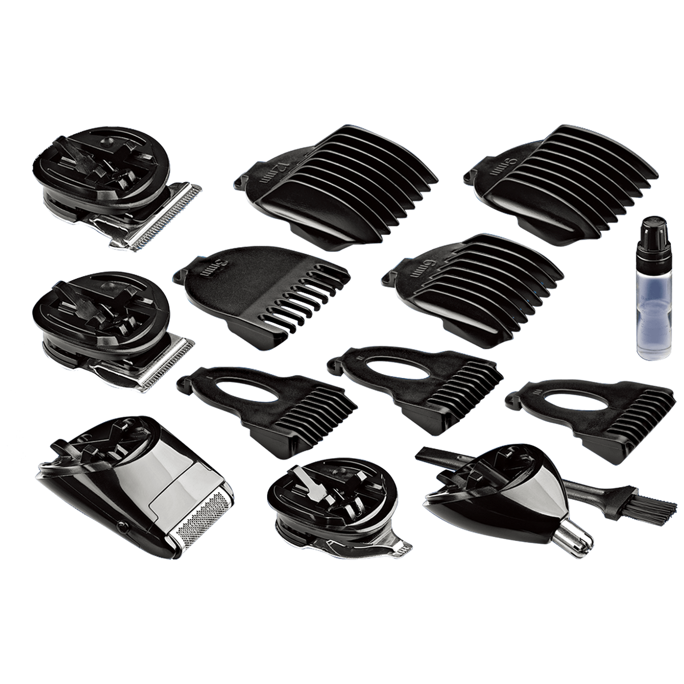 5 zamjenjivih širokih, normalnih glava za precizno rezanje, trimer za nos, brijač, kao i 4 plastična češlja za mašinicu za šišanje (3, 6, 9, 12 mm) i 3 plastična češlja za podrezivanje brade (4, 6, 8 mm).