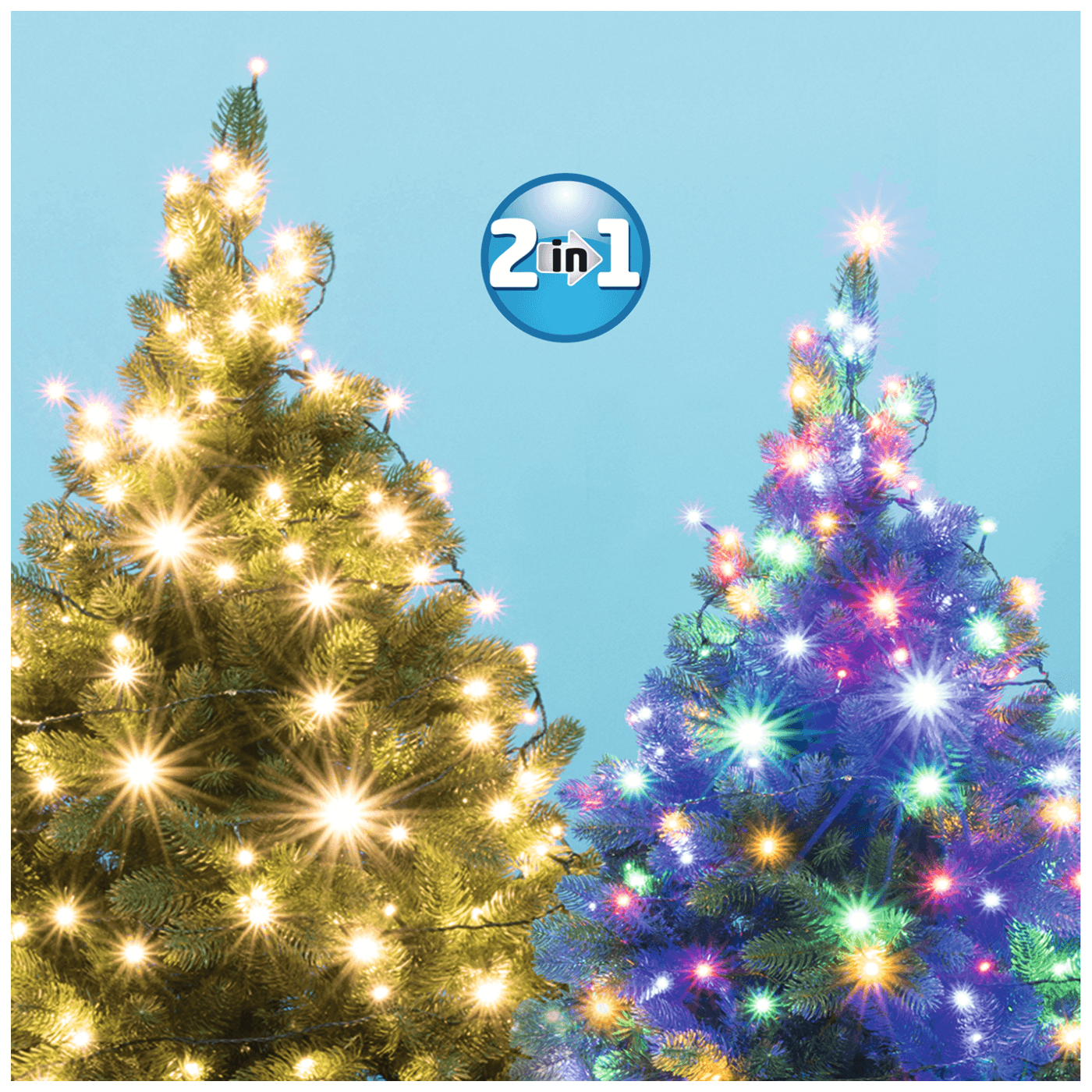 LED 205/WW/M je idealan ukras za Vaše drvce, 100 LED lampica u toplo bijeloj / u boji na zelenoj žici dužine 14 met., 5 programa rada, za unutarnju i vanjsku uporabu, napajanje 230 V ~ adapter