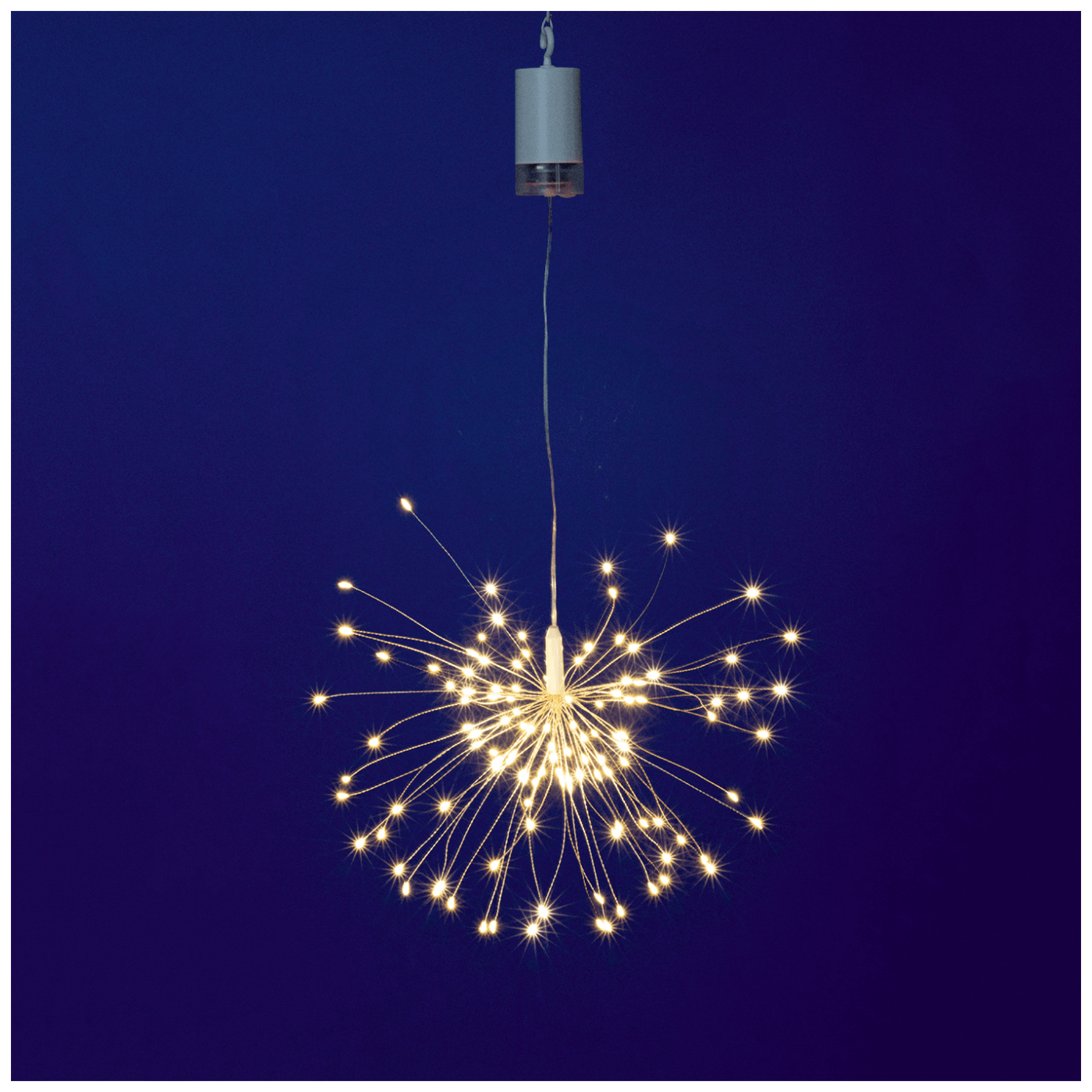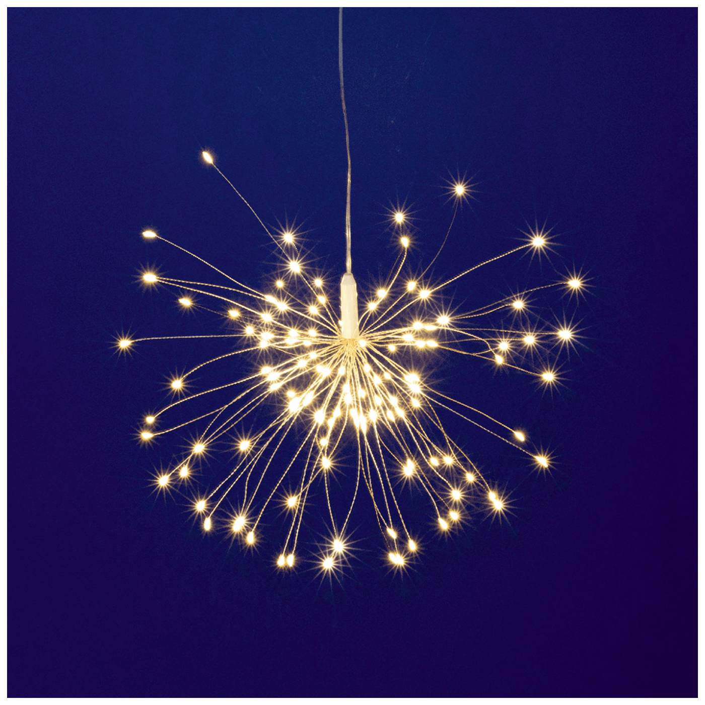 Dekorativna LED rasvjeta, vatromet, za unutranju i vansku uporabu, izvor svjetlosti 120 toplo bijelih LED lampica, 60 kom. u slobodnoj formi, 17 cm dužina niti, 8 funkcija, timer isključenja 6 – 18h sa ponavljanjem, promjenjiva svjetlina, daljinski upravljač, napajanje daljinskog upravljača 4 x 1.5 V AA baterije ( nisu uključene u pakiranje )