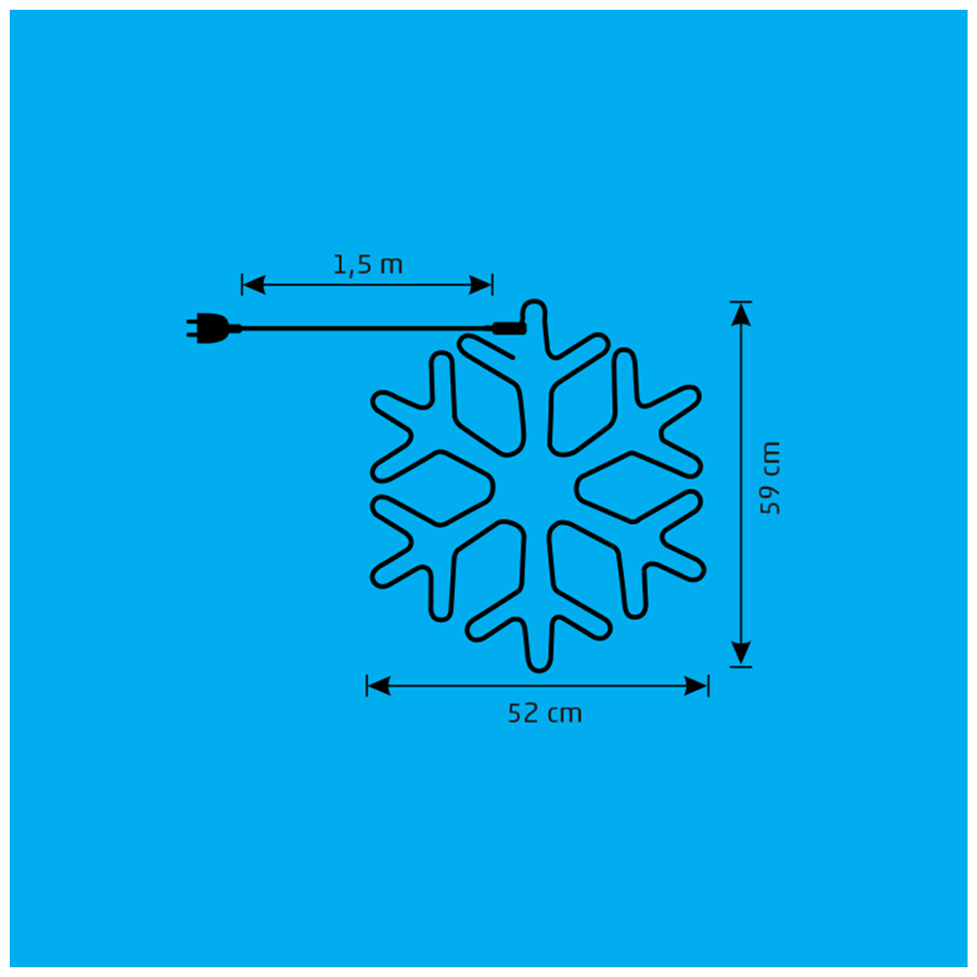 Dekorativna rasvjeta, LED neonska figura, pahuljica, za unutarnju i vanjsku upotrebu, ledeno plavo neonsko svjetlo, svijetli s obje strane figure