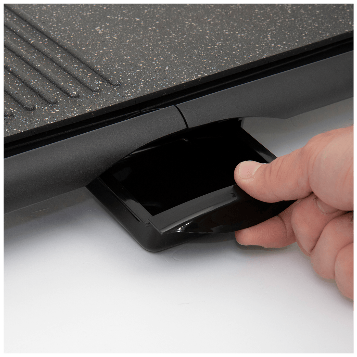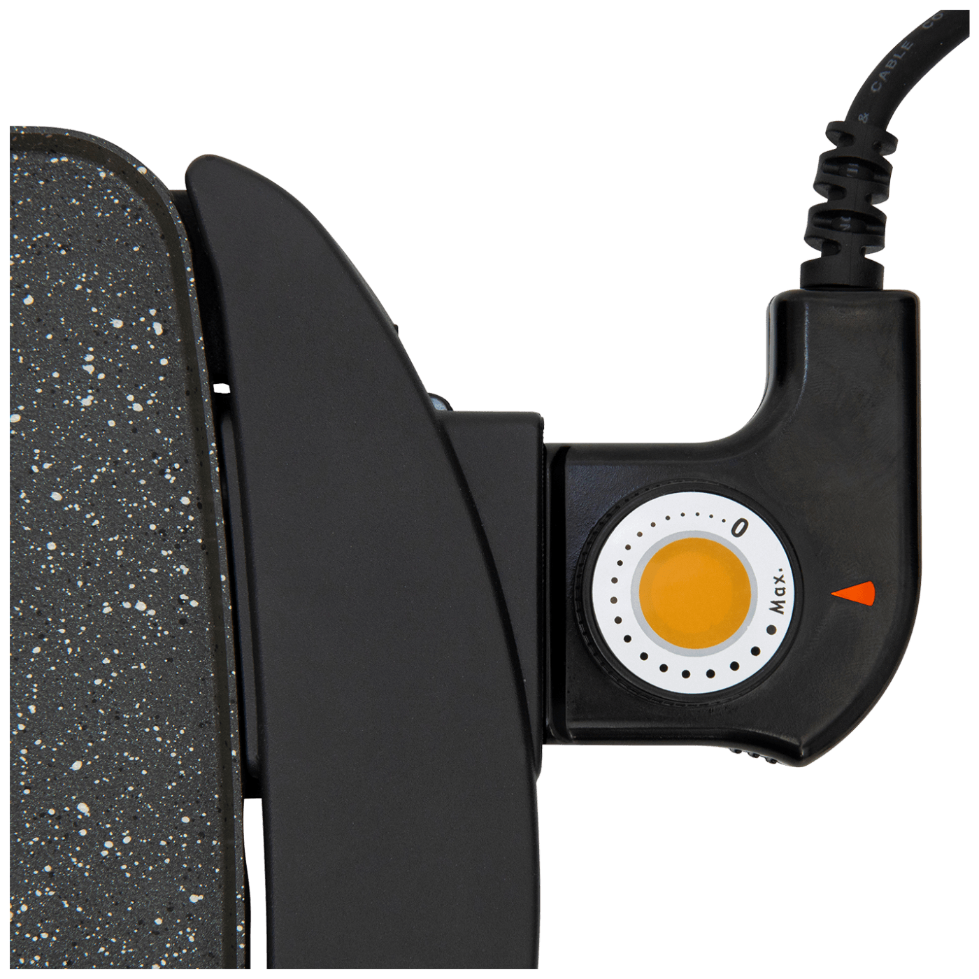 Električni grill, snaga grijača 2000W, grejna površina 52 x 26.5 cm, brzo zagrijavanje, rebrasta i glatka površina sa slojem protiv ljepljenja namirnica, termostat, podesiva temperatura pečenja, odvojiva posuda za skupljanje masnoće, plastične ručke otporne na toplinu, stabilan plastični stalak sa gumenim nogama, jednostavno za održavanje, dužina napojnog kabela 0.8 met., dimenzije 620 x 85 x 32 mm, napajanje 230 V ~ / 50 Hz