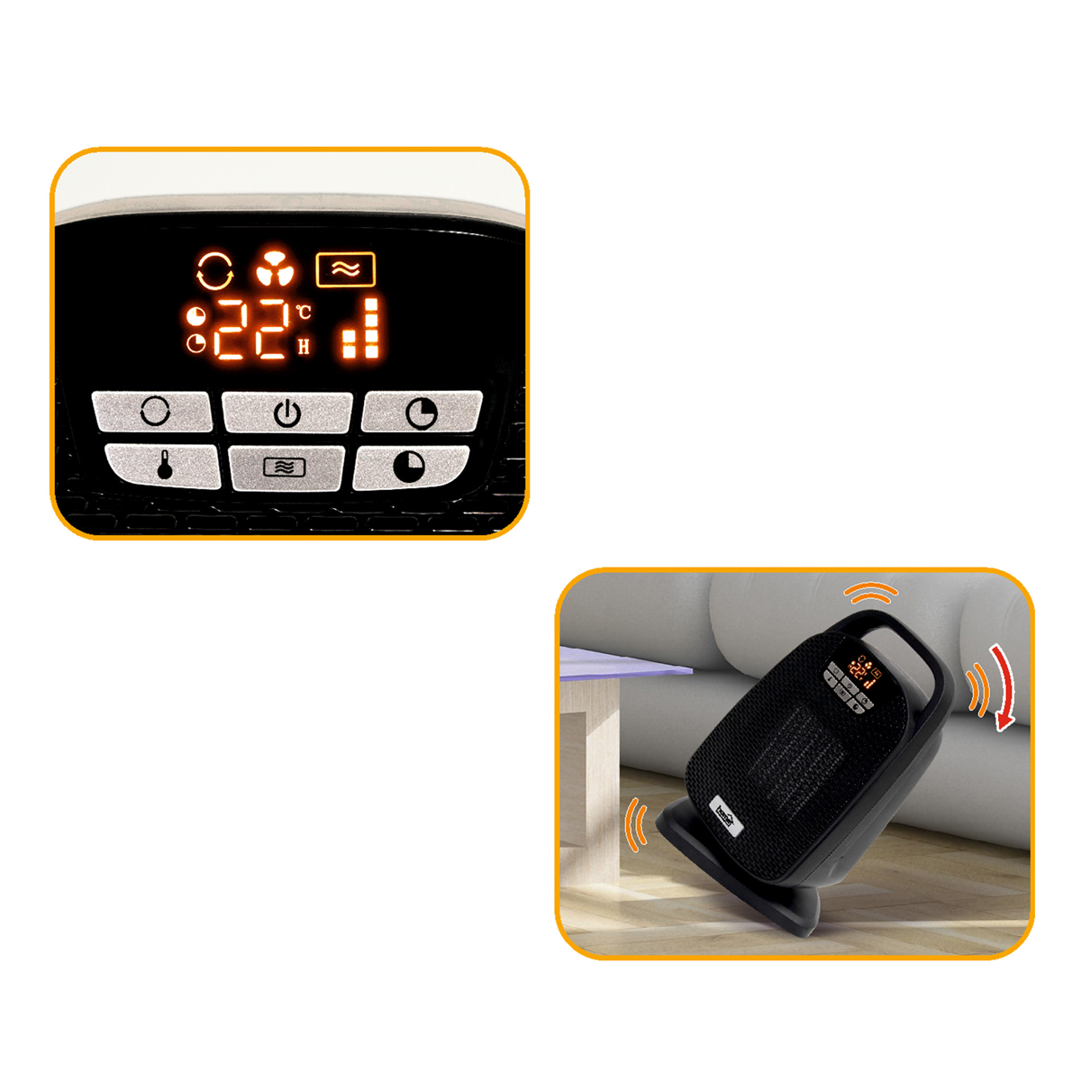 Grijalica sa ventilatorom, podesiva snaga 1000 / 2000W, elektronički termostat, promjenjiva oscilacija, automatsko isključivanje u slučaju prevrtanja ili pregrijavanja, timer za uključivanje / isključivanje, dimenzije 220 x 350 x 155 mm, napajanje 230V / 50Hz