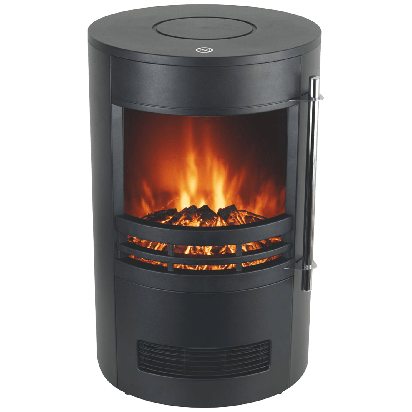 Panoramski samostojeći električni kamin ( grijalica ) sa širokim prozorima pruža savršen pogled na unutrašnjost koja tijekom hladnih noći može stvroti spektakl istinske intimne trenutke. Dodatna prednost je realističan plamen koje stvara LED svjetlo. Podesiva snaga grijača 1000 W / 2000 W, mehanički termostat, automatsko isključivanje u slučaju pregrijavanja, napajanje 230 V ~ / 50 Hz, dimenzije 410 x 645 mm