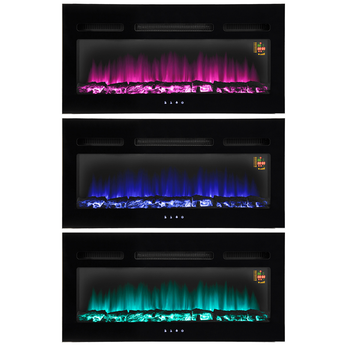 Elektični kamin (grijalica) sa ventilatorom, ugradbeni, snaga grijača 1000W / 2000W, realan efekt sagorijevanja drveta, efekt plamena i grijanje se može koristiti odvojeno, ručno i upravljanje preko daljinskog upravljača, LED izvor svjetlosti ( max. 13 W ), mogučnost programiranja, elektronički termostat