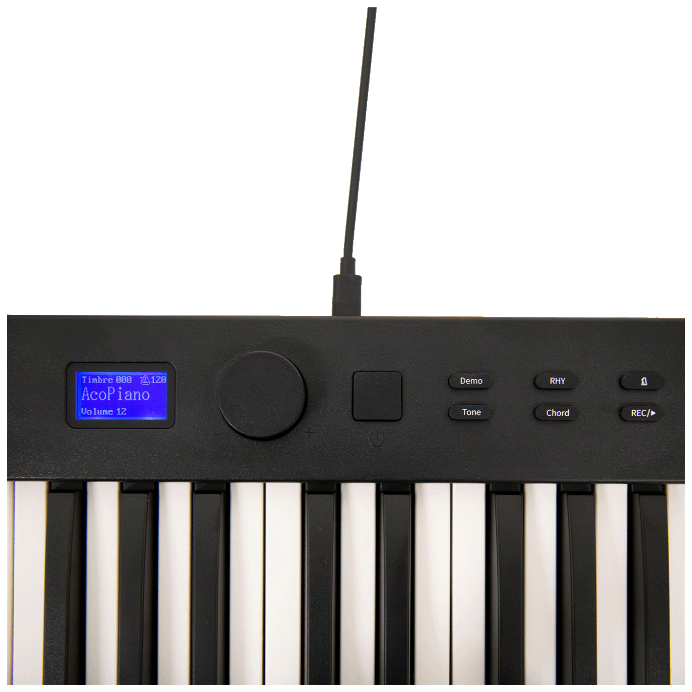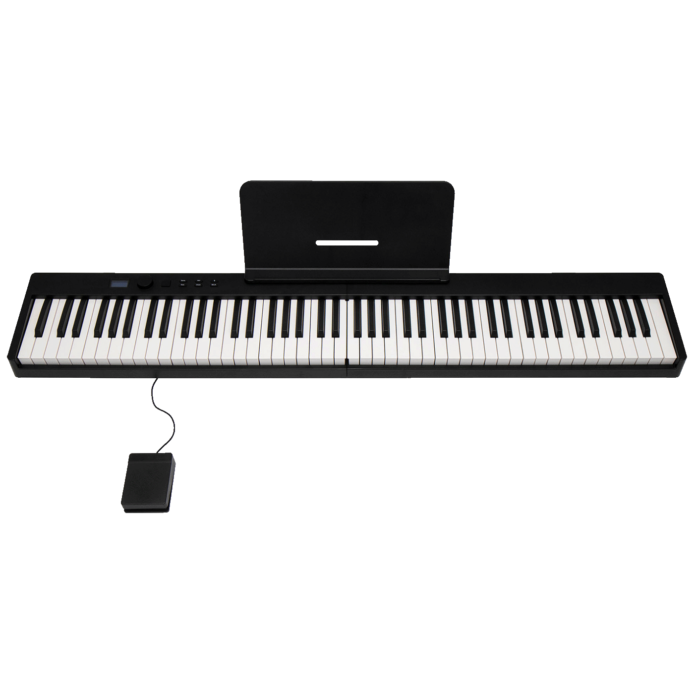 Sklopivi klavir nudi 88 tipki koje su točno iste veličine kao tradicionalni klavir, čime se osigurava prirodan osjećaj sviranja. Sa 128 tonova i ritmova koji se mogu odabrati te 20 ugrađenih demo pjesama, instrument čini vježbanje ili nastupe šarenijim. Ugrađeni stereo zvučnici pružaju bogat, čist zvuk, dok se glasnoća može podesiti na 16 unaprijed postavljenih razina kako bi se uvijek prilagodila okolini.