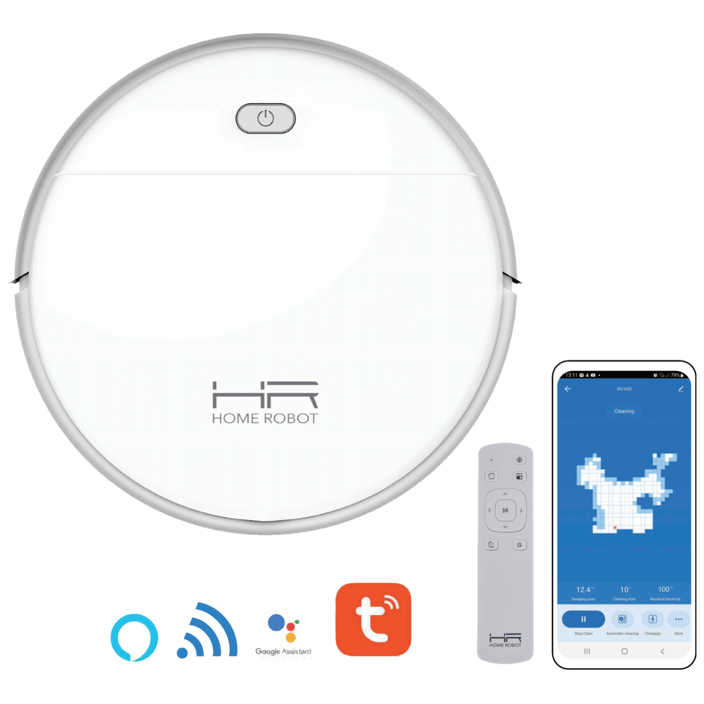 – HOME ROBOT RV400 robotski usisavač učinkovito upija prljavštinu, prašinu i životinjsku dlaku s podova, tepiha i uglova.