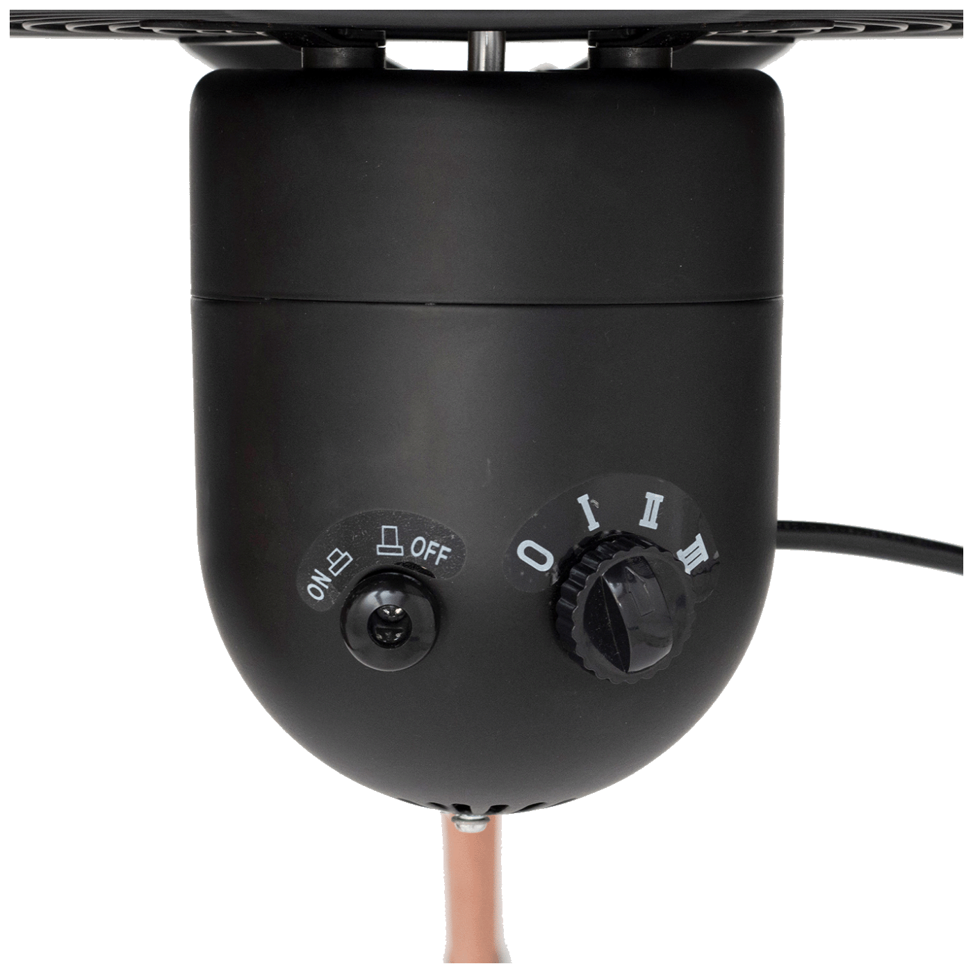 Mat crni dizajn daje eleganciju ventilatoru, koji se savršeno uklapa u moderne i klasične interijere. Tri sklopive noge sa drvenim uzorkom pružaju stabilnu osnovu, tako da se ventilator može lako premjestiti i pohraniti. Mehanička kontrola omogućava jednostavnu i intuitivnu upotrebu.