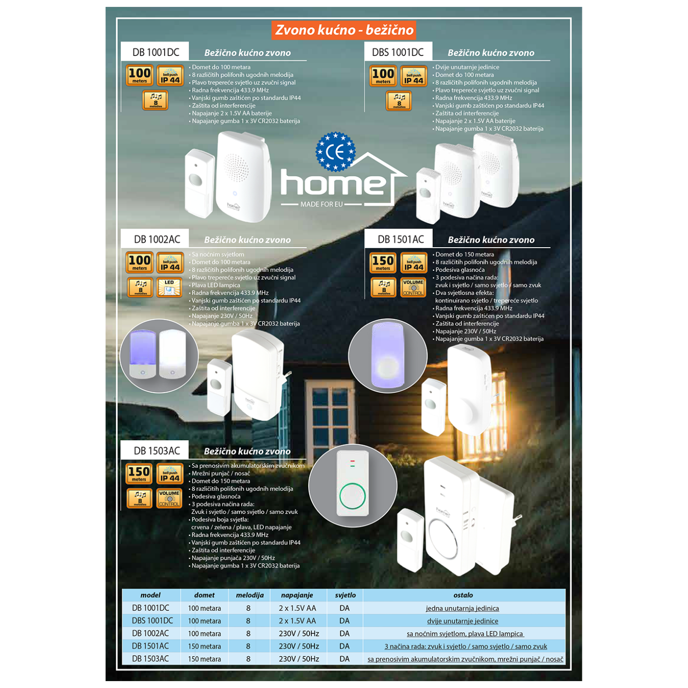 Be the first to review “home Zvono kućno, bežično, 8 melodija – DB 1001DC”