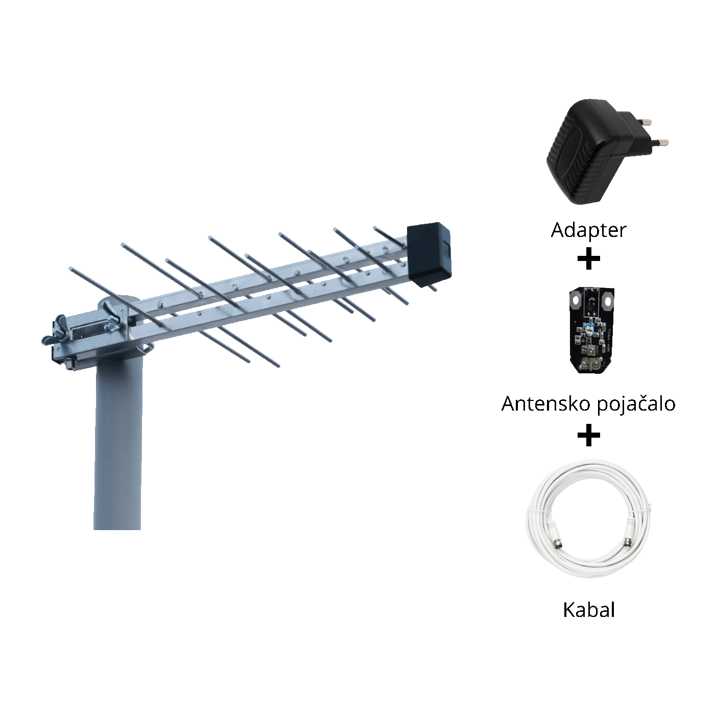 Iskra Antena Loga UHF sa pojačalom, dobit 16 dB, F-konektor – P-20 DTT/G H/V
