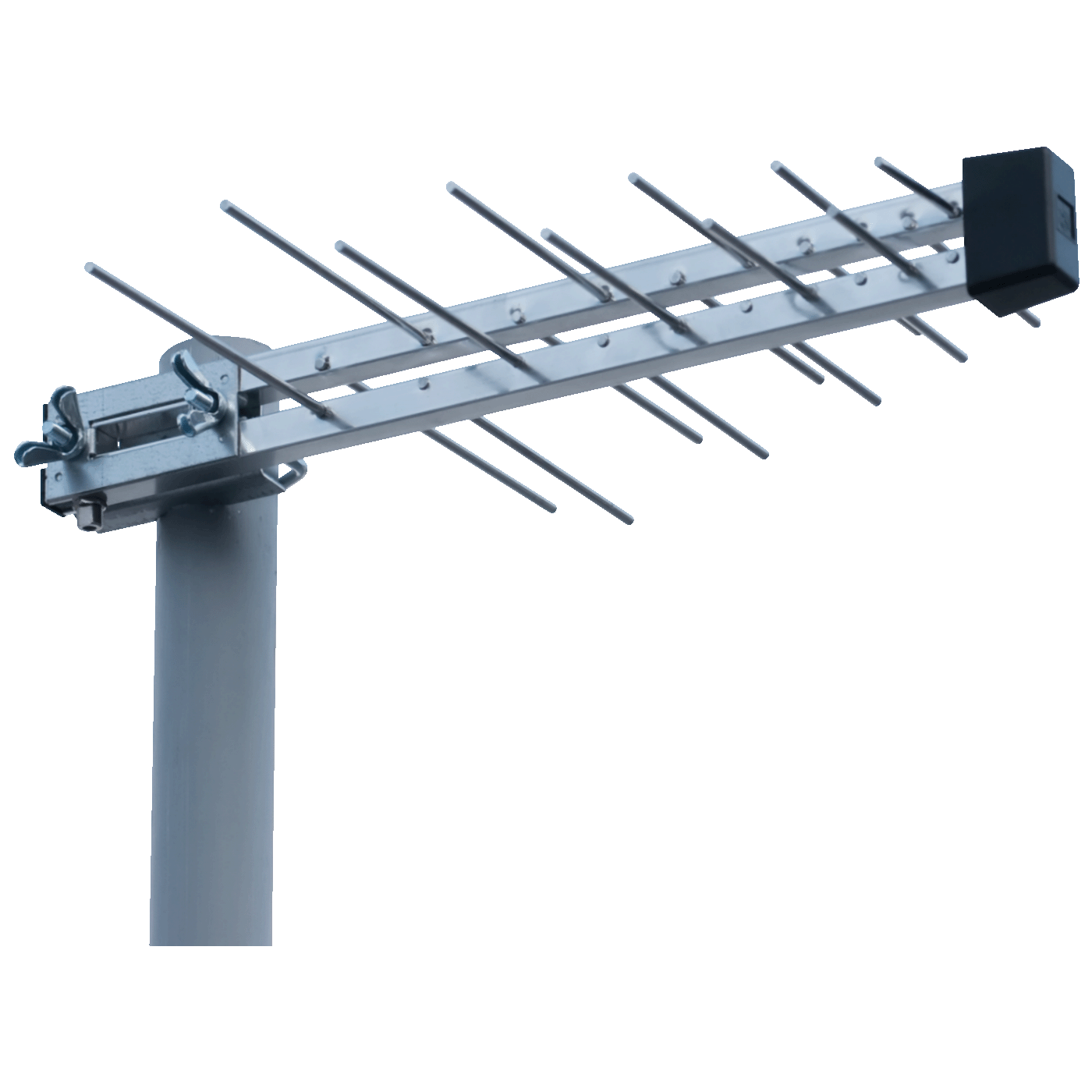 Vanjska kratka antena sa snažnim signalom. Jedna od glavnih karakteristika antena koje proizvodimo je ugrađeni “F” ženski konektor, koji omogućava jednostavno povezivanje koaksijalnog kabla na antenu. P-20 DTT/G H/V H/V verzija s ugrađenim pojačalom DIGI-LOG 14VU i “F” ženskim konektorom. Može se koristiti za obje polarizacije.