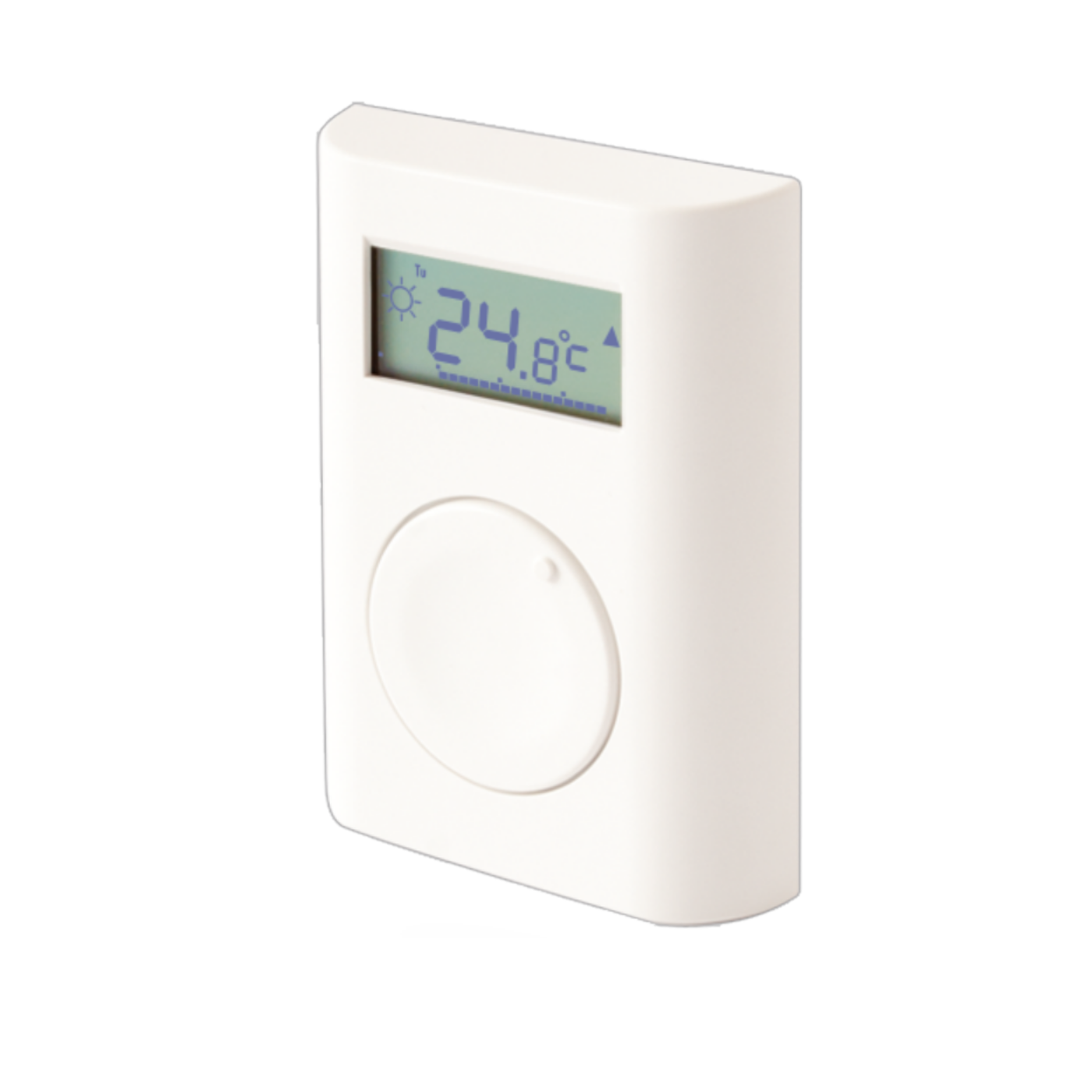 Bežični termostat, komunikacijski band 868.1 MHz, komunikacijski opseg 300m (na otvorenom), napajanje 2 x AA baterija ( LR6 ) 1,5V 2400mAh, preporučena visina instalacije 1,5 metar iznad poda, radna temperatura -10 do 70°C. Dizajniran za mjerenje i kontrolu unutarnje temperature, adresibilan je i zauzima jednu poziciju u sistemu. Jednostavno upravljanje, grafikon povijesti temperature, suzbijanje jakosti grijanja ako je otvoren prozor, nedeljni režim, itd…..