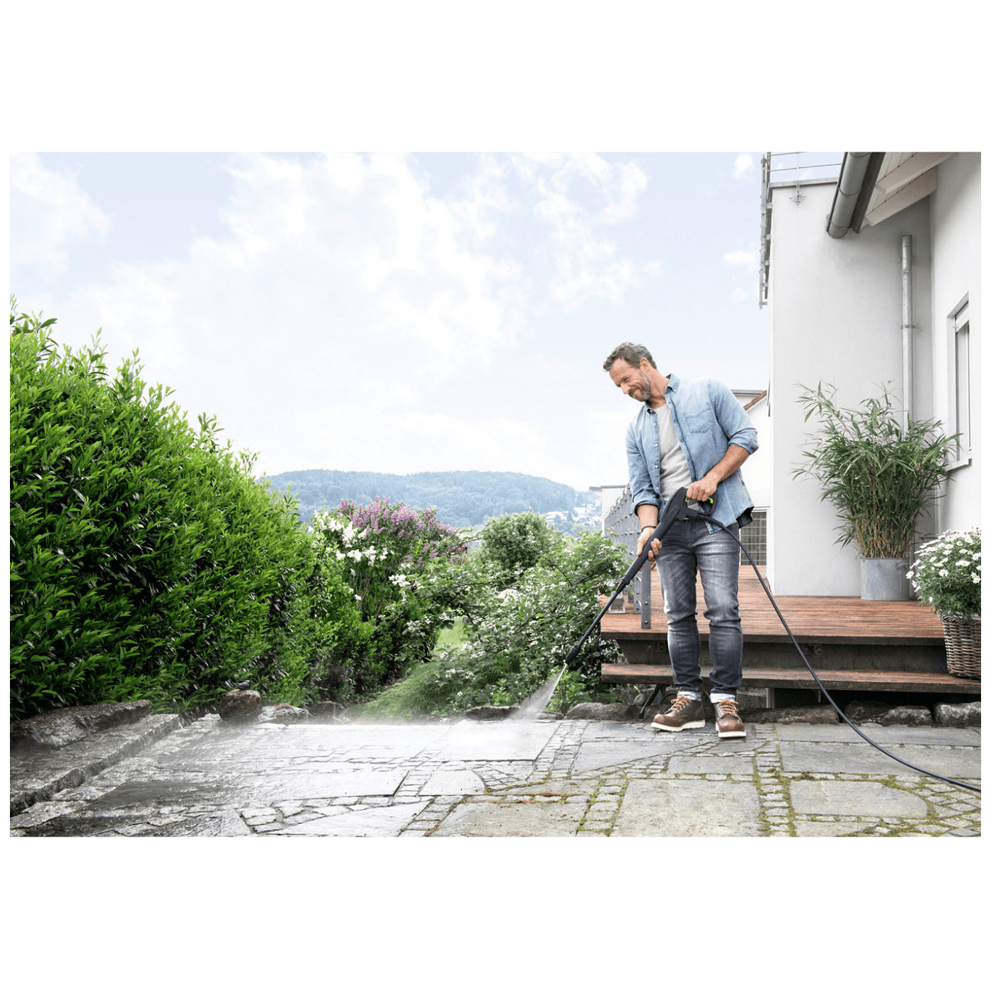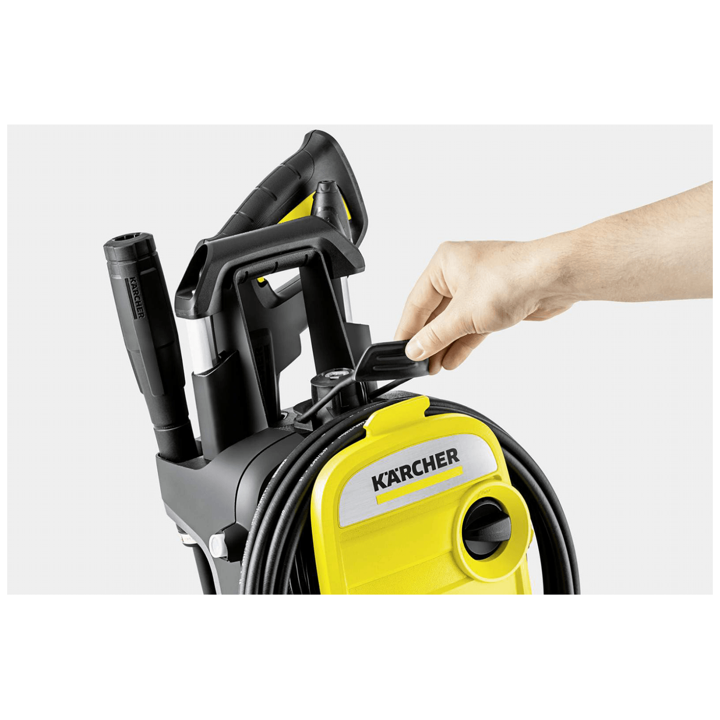 K 5 Compact kombinira maksimalnu udobnost i punu snagu. Zahvaljujući inovativnom konceptu skladištenja crijeva, visokotlačno crijevo se nakon uporabe može jednostavno namotati oko prednjeg poklopca i učvrstiti gumenom trakom spremnom za transport. Zahvaljujući svojim kompaktnim dimenzijama, cijeli je uređaj jednostavan za transport i može se pohraniti bilo gdje – na polici ili u prtljažniku automobila. Dvije ručke za nošenje, teleskopska ručka podesiva po visini i mogućnost upotrebe uređaja bilo vodoravno ili okomito pružaju još više praktičnosti tijekom rada. Opremljen je i pištoljem Quick Connect, 8 m visokotlačnim crijevom, Vario Power prstenom za prskanje (VPS), uređajem za raspršivanje prljavštine i filtrom vode. Tlačni uređaj za pranje K 5 Compact, s vodenim motorom i površinskim performansama od 40 m² / h, idealno je za redovitu uporabu pri uklanjanju umjerenih prljavština.