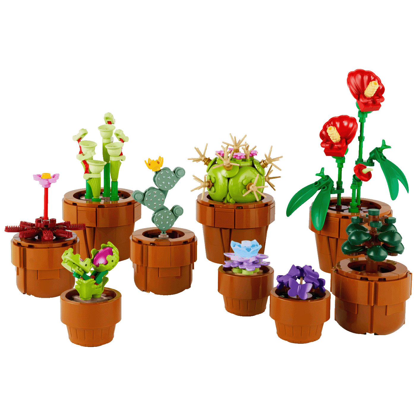 – Izradite elegantan cvjetni ukras koji ne zahtijeva nimalo brige u kompletu za slaganje ukrasa za odrasle. Projekt slaganja LEGO® Icons Male biljke (10329) sastoji se od biljaka po uzoru na vrste iz sušnih i tropskih krajeva te na biljke mesožderke, svake u posudi boje terakote. Opustite se dok slažete 9 biljaka pa ih izložite kod kuće ili u uredu. Komplet je odličan dar za ljubitelje biljaka i savršen projekt za slaganje s porodicom i prijateljima. Ima modele za jednostavno, srednje i napredno slaganje, te je prikladan i za početnike i za napredne graditelje. U aplikaciji LEGO Builder dostupna su digitalna uputstva za slaganje za ovaj komplet. Pronađite prostor za opuštanje uz složive modele iz LEGO Botaničke kolekcije, dio inspirativne linije LEGO kompleta za slaganje namijenjenih odraslima.