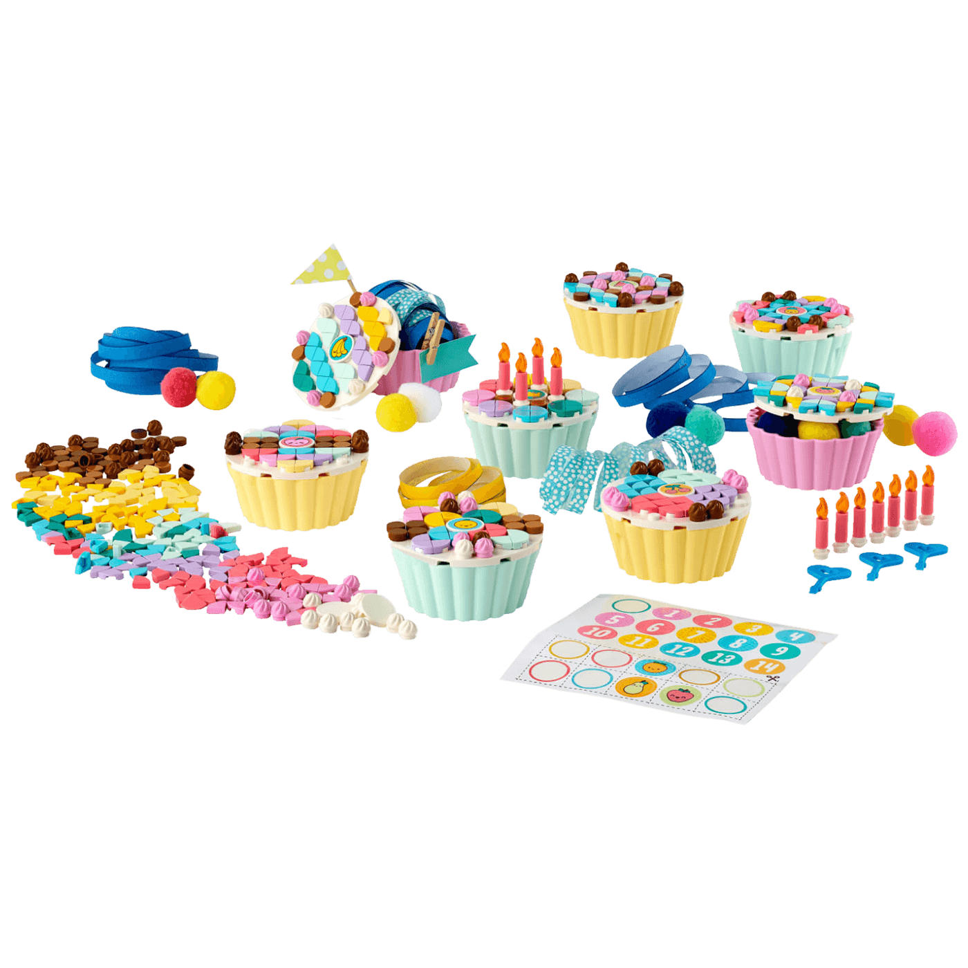 • Iznenadite mališane slatkim kompletom LEGO® DOTS Pribor za dobro slavlje (41926) sa 8 kolačića za ukrašavanje, listom naljepnica, rođendanskim svjećicama koje se mogu složiti i mnogo šarenih pločica.