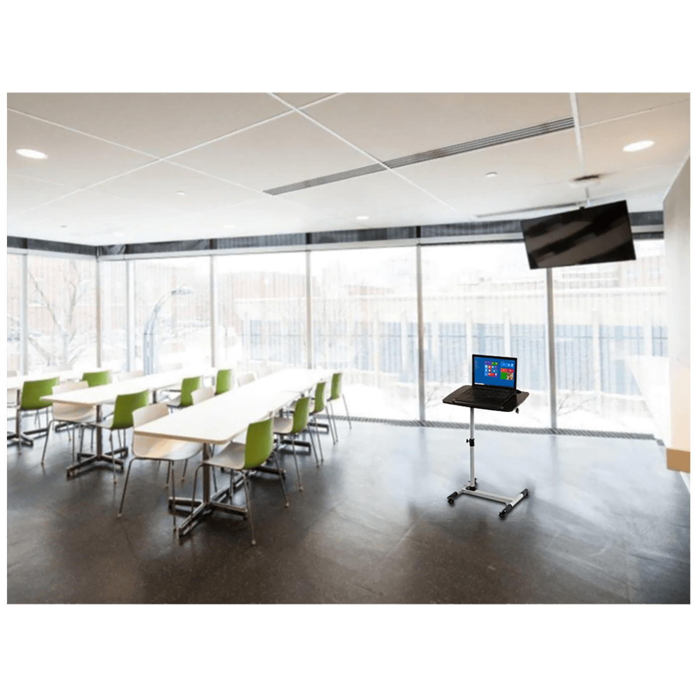 Odgovara velikoj većini komercijalno dostupnih laptopa i projektora koji su kompatibilni sa postoljem i ne prelaze njegove dimenzije.
