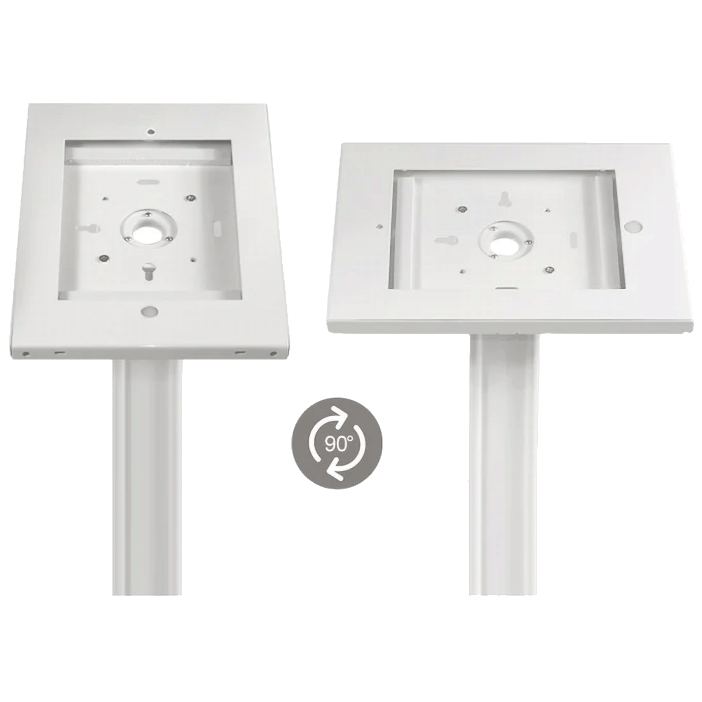 Podni stalak za tablet iKiosk odlikuje se visokokvalitetnom izradom i čvrstom čeličnom bazom s rupama za montažu kako bi se osigurala maksimalna sigurnost unutarnjeg uređaja.