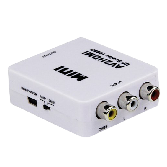 Audio video konverter sa analognog CVBS na digitalni HDMI, HDMI v1.3, ulaz 3 x RCA konektor (video + audio R+L), ulazni video formati PAL, NTSC3.58, NTSC4.43, SECAM, PAL / M, Pal / N, izlaz HDMI 1080p / 60Hz, 720p / 60Hz. Mehanički odabir izlazn rezolucije, napajanje 5V preko USB kabla.