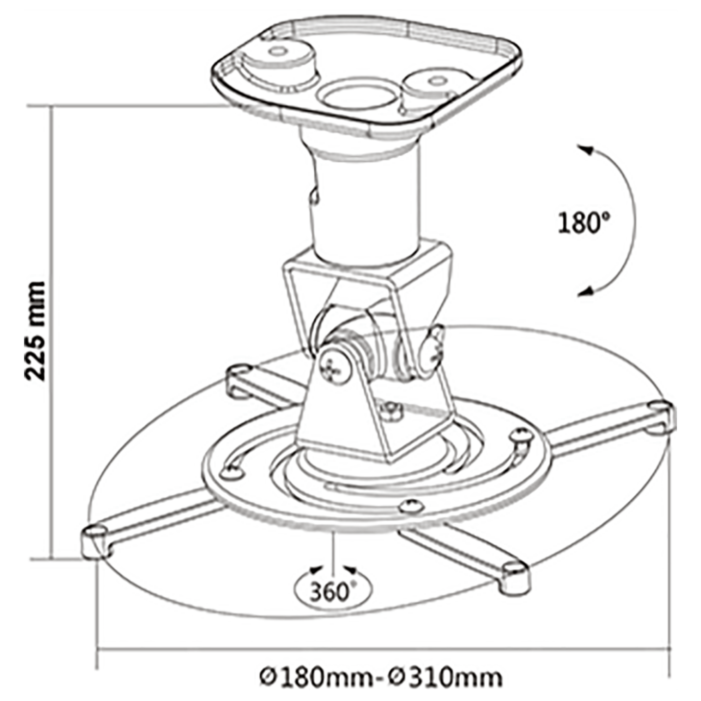Nosač za projektor, maksimalna nosivot 15 kg, nagib do 180°, udaljenost od stropa 225 mm, zakretanje 360°, kable management, pribor za montažu