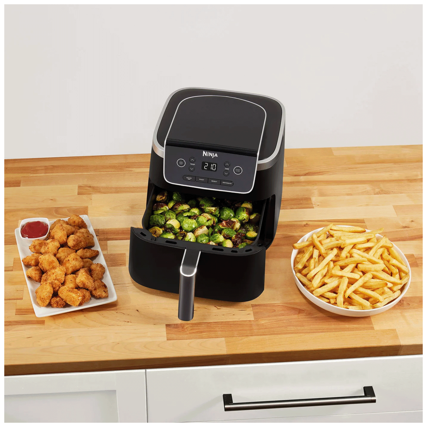 Hrskavo u trenu. Ninja Air Fryer PRO kuha svu hranu brzo i s malo ili bez ulja, za zdravije prženje – do 75% manje masnoće od konvencionalnih metoda prženja*.